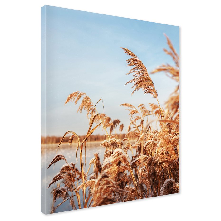 Obraz na płótnie z motywem trzcinowisko, zima, śnieg to kwintesencja estetyki i trwałości. Dzięki łatwemu montażowi i uniwersalnemu wzornictwu, czyni go idealnym wyborem zarówno do codziennego użytku, jak i na wyrafinowany prezent.