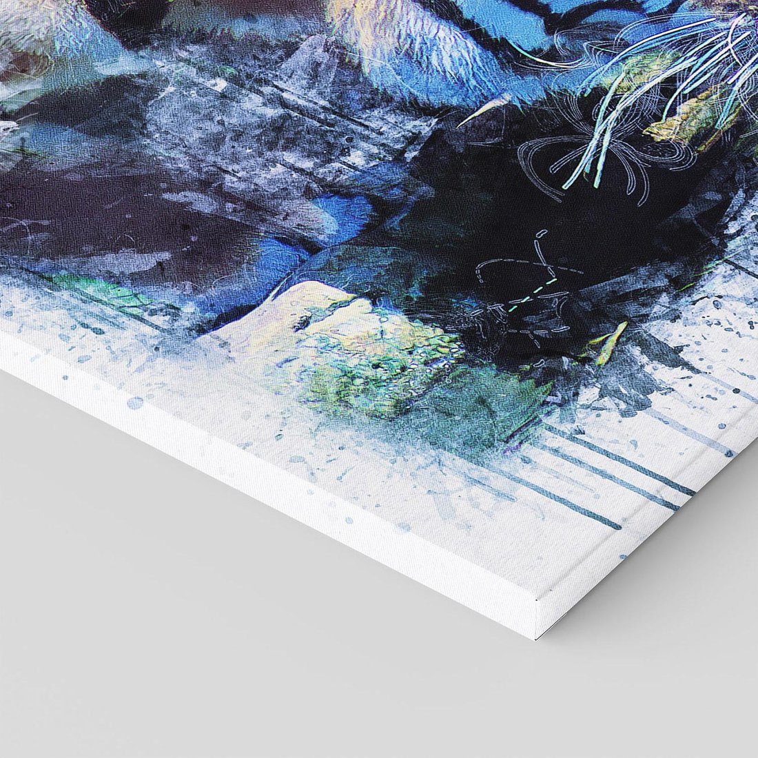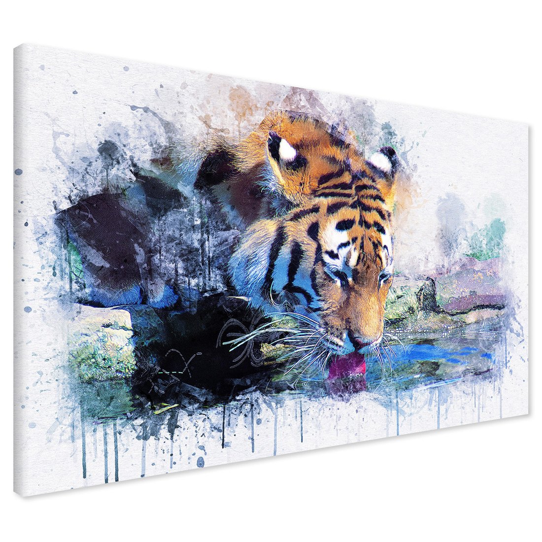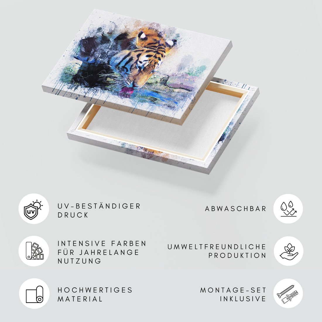 Obraz na płótnie z motywem tygrys, woda, akwarela to kwintesencja estetyki i trwałości. Dzięki łatwemu montażowi i uniwersalnemu wzornictwu, czyni go idealnym wyborem zarówno do codziennego użytku, jak i na wyrafinowany prezent.