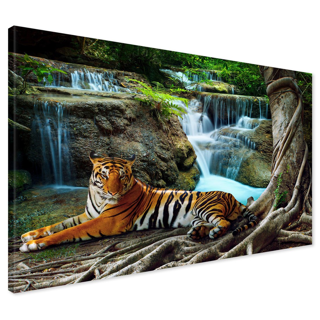 Obraz na płótnie - tygrys, wodospad, dżungla