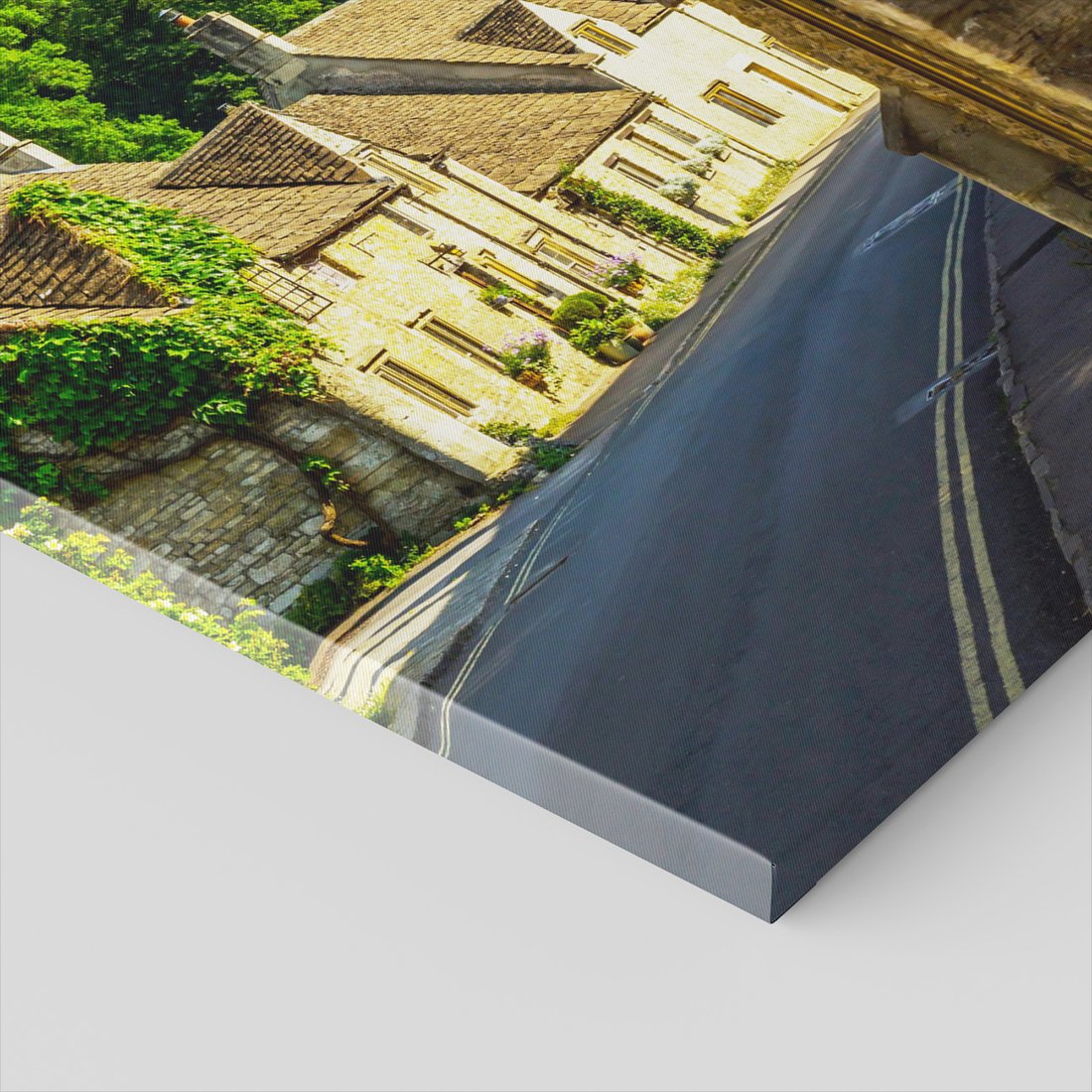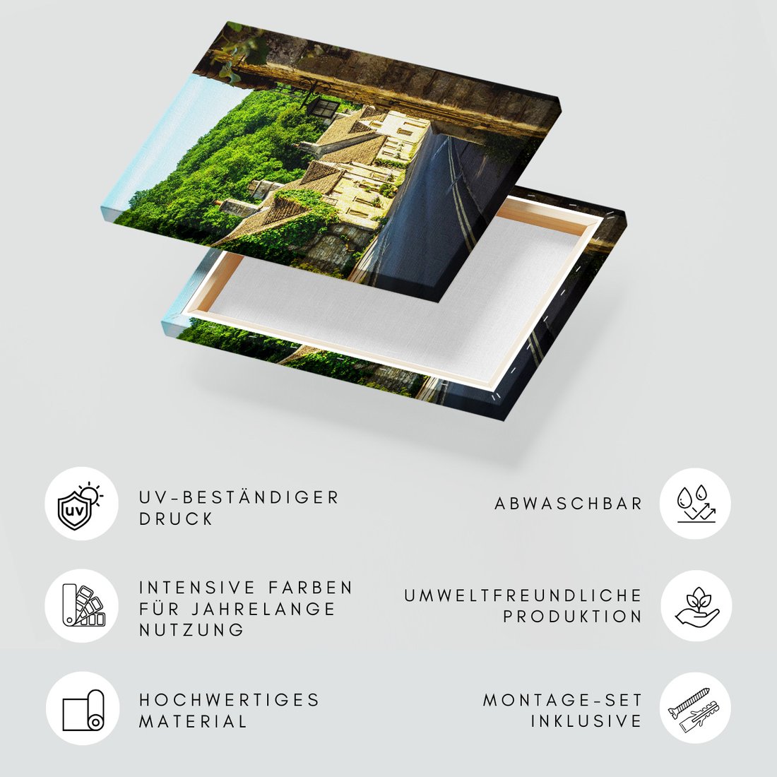 Obraz na płótnie z motywem ulica, domy, zieleń to kwintesencja estetyki i trwałości. Dzięki łatwemu montażowi i uniwersalnemu wzornictwu, czyni go idealnym wyborem zarówno do codziennego użytku, jak i na wyrafinowany prezent.
