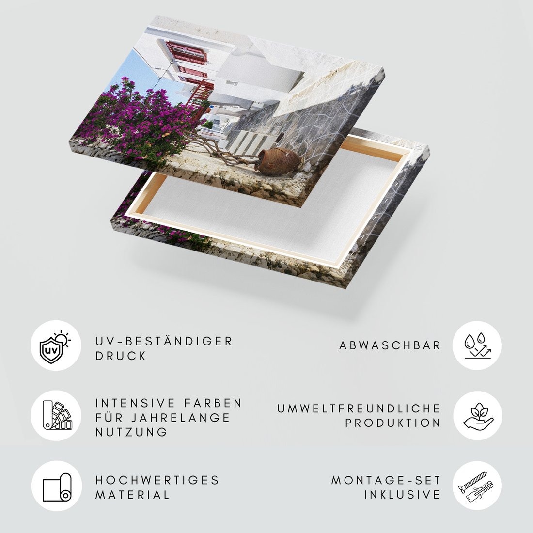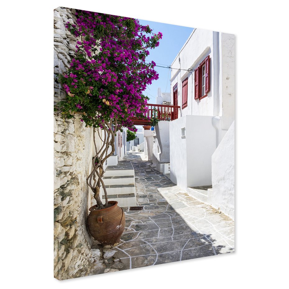Obraz na płótnie z motywem uliczka, kwiaty, biały to kwintesencja estetyki i trwałości. Dzięki łatwemu montażowi i uniwersalnemu wzornictwu, czyni go idealnym wyborem zarówno do codziennego użytku, jak i na wyrafinowany prezent.