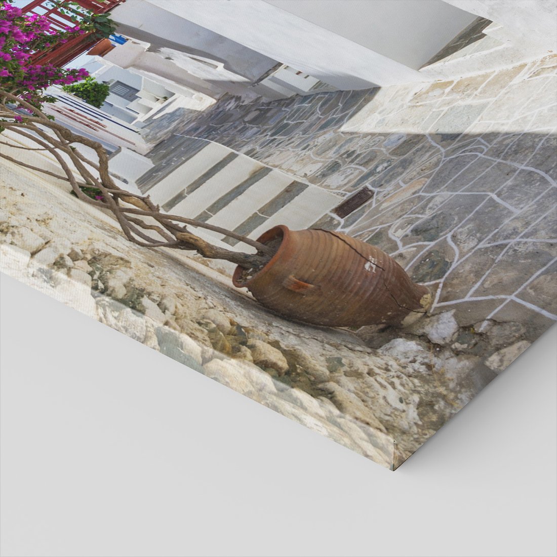 • Obraz na płótnie - uliczka, kwiaty, biały