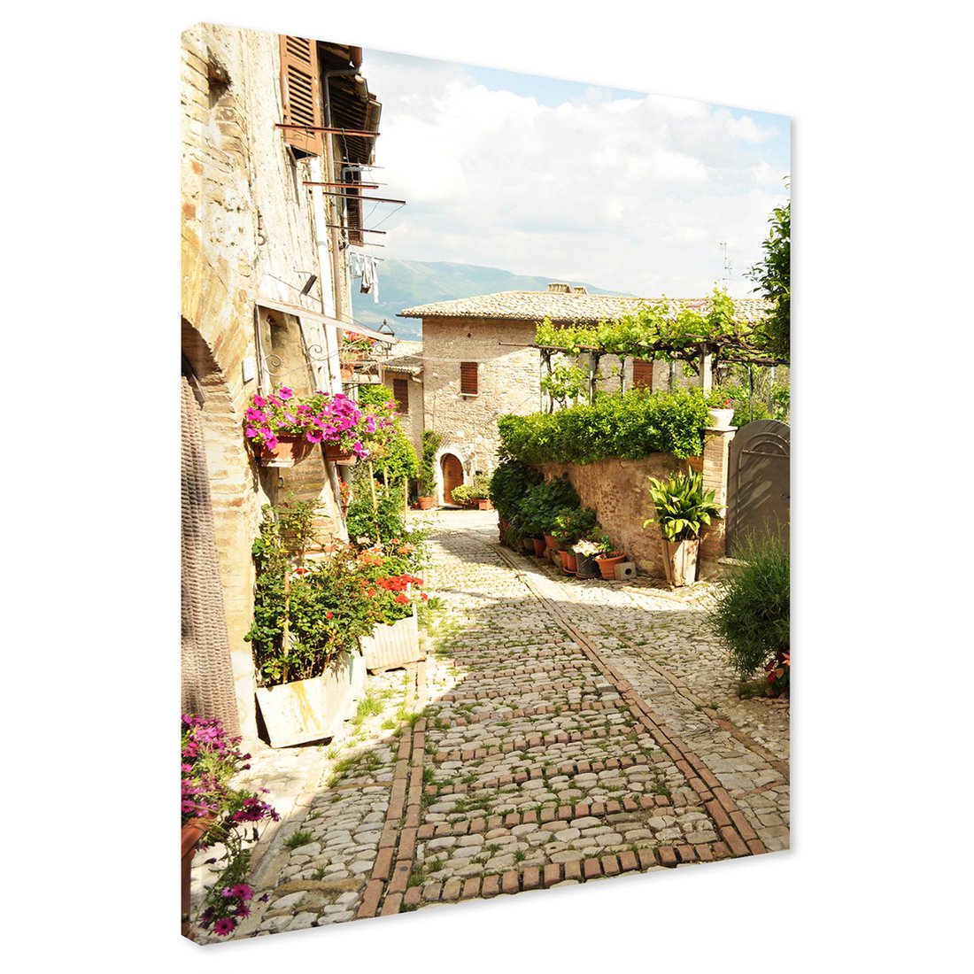 Obraz na płótnie z motywem uliczka, kwiaty, kamienie to kwintesencja estetyki i trwałości. Dzięki łatwemu montażowi i uniwersalnemu wzornictwu, czyni go idealnym wyborem zarówno do codziennego użytku, jak i na wyrafinowany prezent.