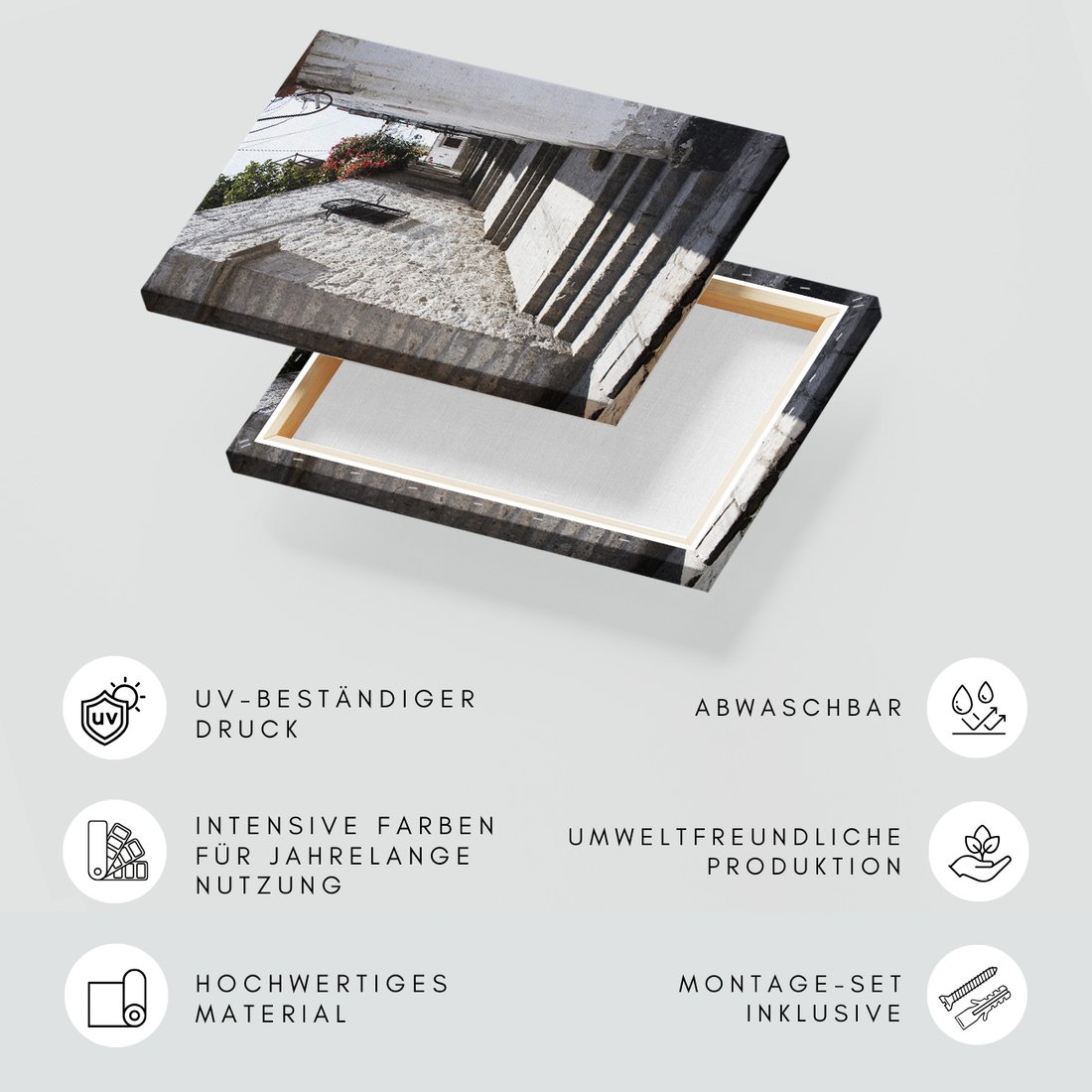 Obraz na płótnie z motywem uliczka, schody, miasto to kwintesencja estetyki i trwałości. Dzięki łatwemu montażowi i uniwersalnemu wzornictwu, czyni go idealnym wyborem zarówno do codziennego użytku, jak i na wyrafinowany prezent.