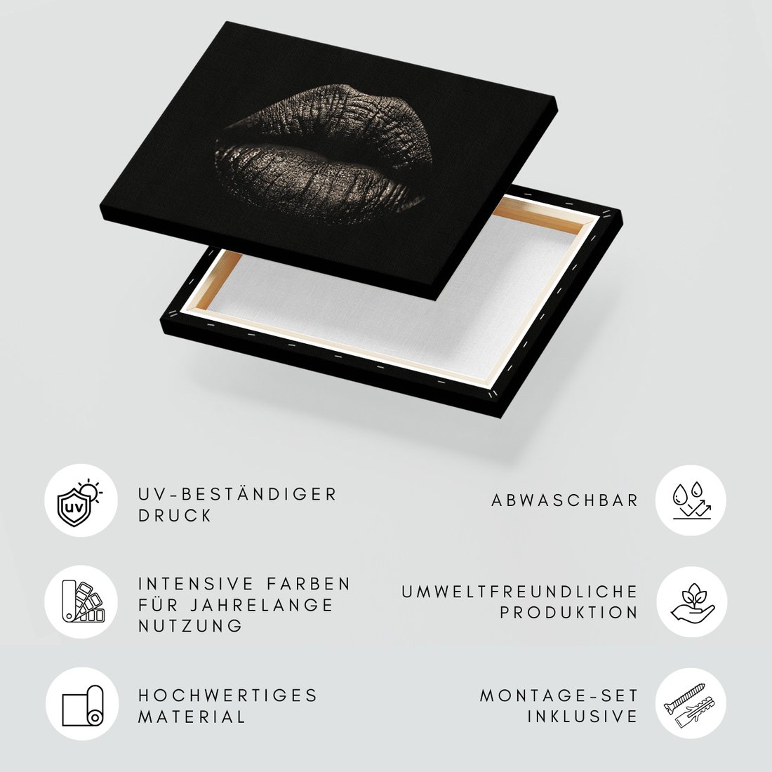 Obraz na płótnie z motywem usta, czarne, błyszczące to kwintesencja estetyki i trwałości. Dzięki łatwemu montażowi i uniwersalnemu wzornictwu, czyni go idealnym wyborem zarówno do codziennego użytku, jak i na wyrafinowany prezent.