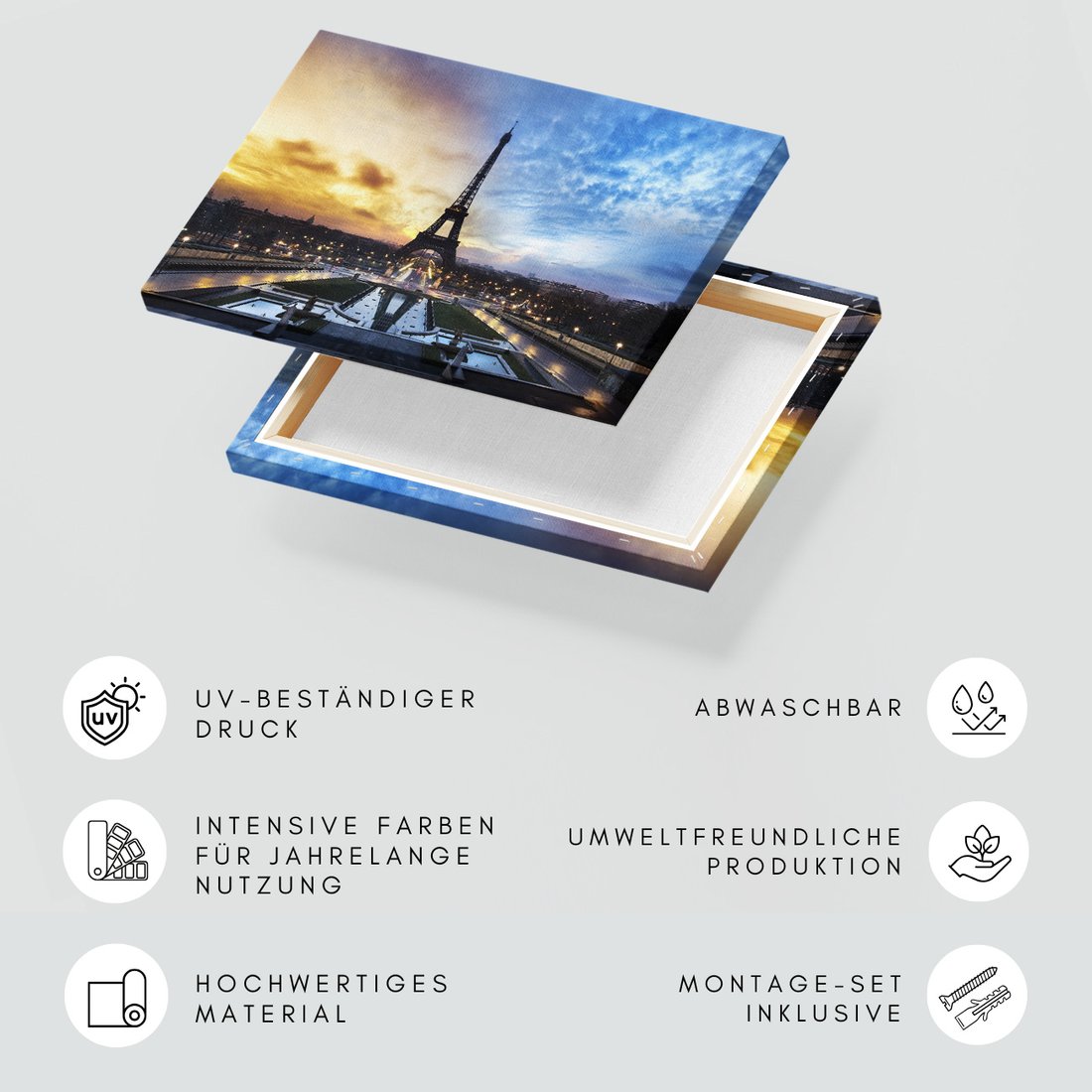 Obraz na płótnie z motywem Wieża Eiffla, Paryż, miasto to kwintesencja estetyki i trwałości. Dzięki łatwemu montażowi i uniwersalnemu wzornictwu, czyni go idealnym wyborem zarówno do codziennego użytku, jak i na wyrafinowany prezent.