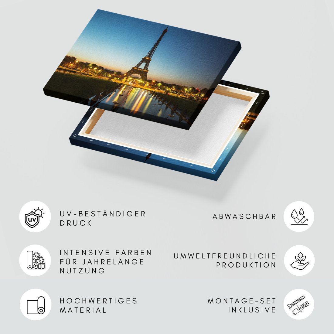 Obraz na płótnie z motywem wieża Eiffla, Paryż, noc to kwintesencja estetyki i trwałości. Dzięki łatwemu montażowi i uniwersalnemu wzornictwu, czyni go idealnym wyborem zarówno do codziennego użytku, jak i na wyrafinowany prezent.