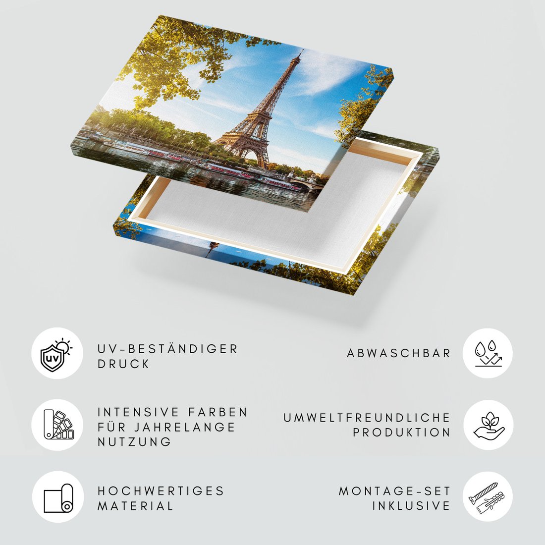 Obraz na płótnie z motywem Wieża Eiffla, Paryż, rzeka to kwintesencja estetyki i trwałości. Dzięki łatwemu montażowi i uniwersalnemu wzornictwu, czyni go idealnym wyborem zarówno do codziennego użytku, jak i na wyrafinowany prezent.