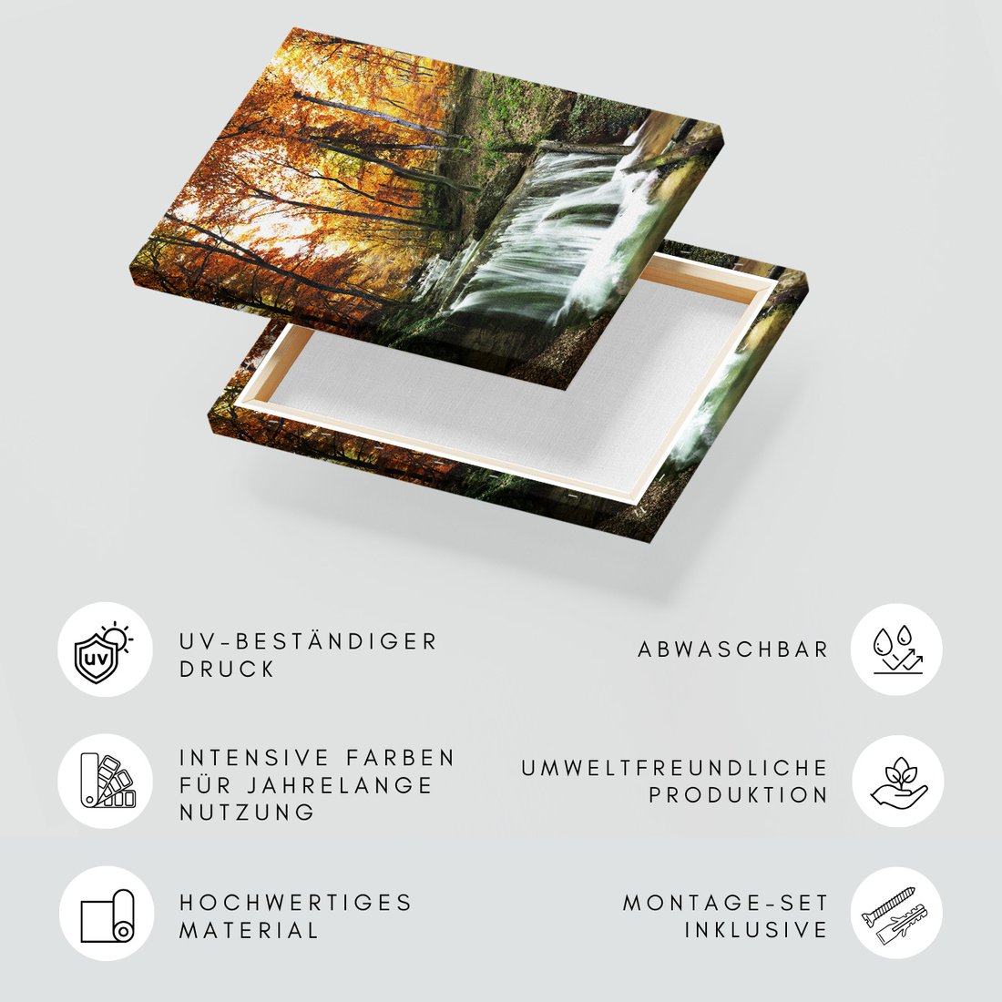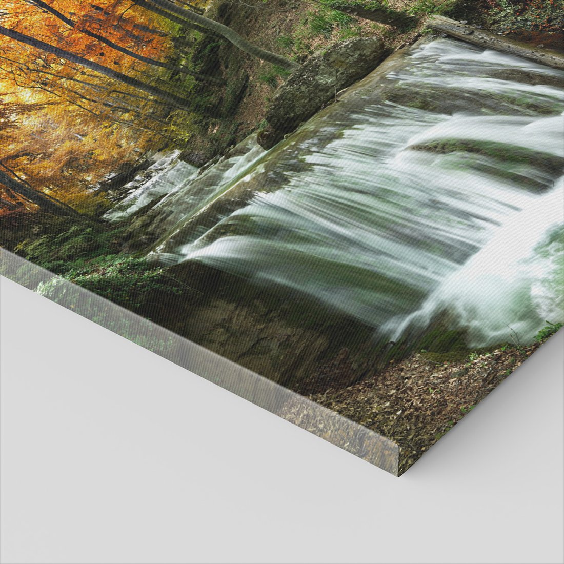 Obraz na płótnie z motywem wodospad, jesień, las to kwintesencja estetyki i trwałości. Dzięki łatwemu montażowi i uniwersalnemu wzornictwu, czyni go idealnym wyborem zarówno do codziennego użytku, jak i na wyrafinowany prezent.