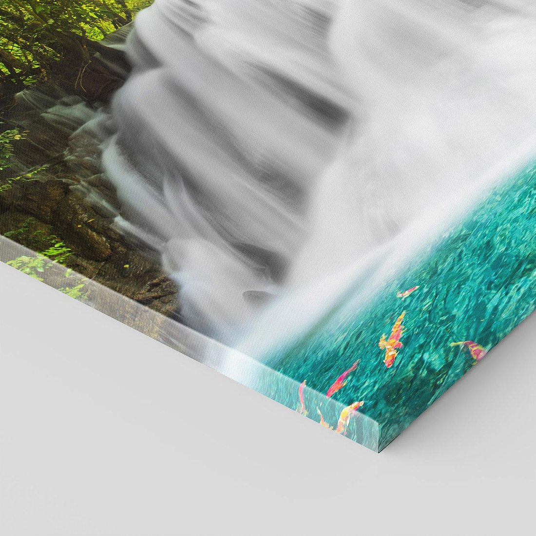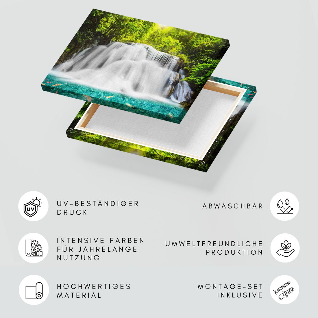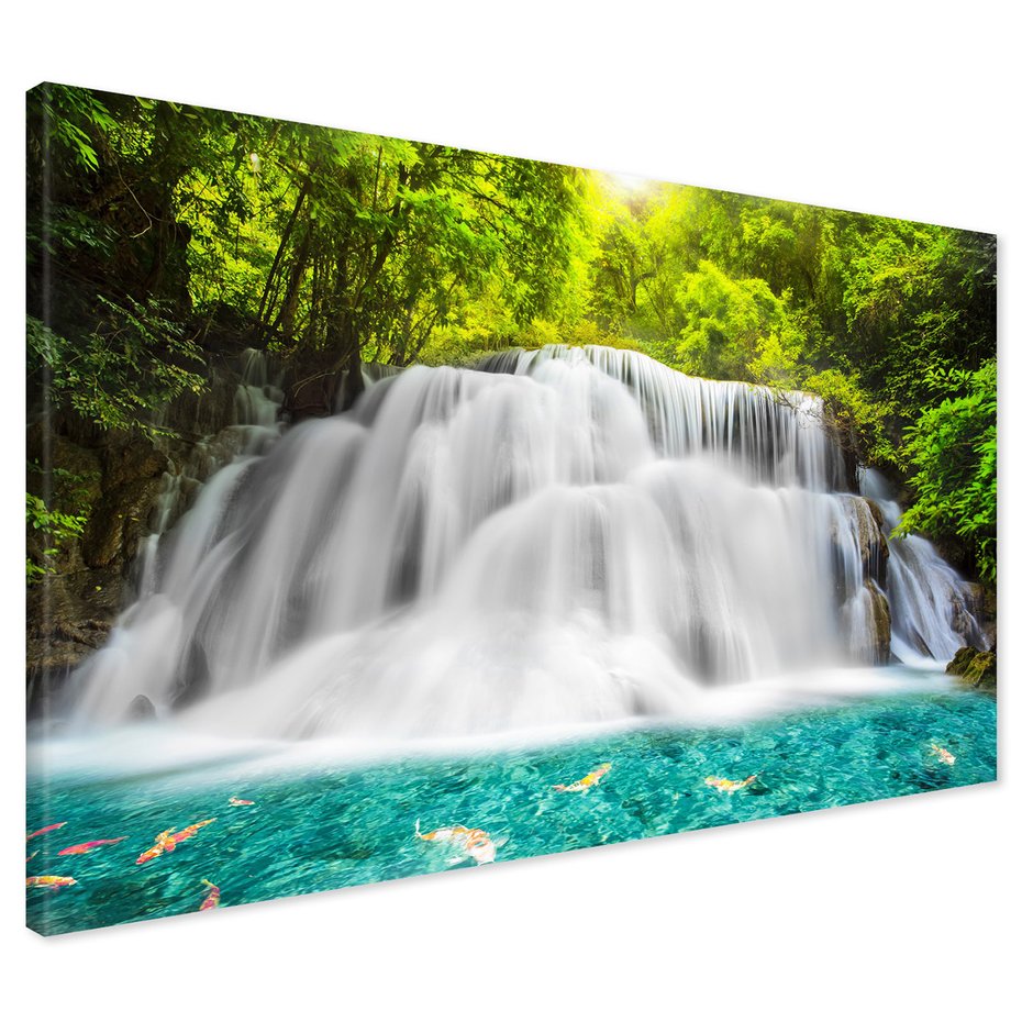Obraz na płótnie z motywem wodospad, las, natura to kwintesencja estetyki i trwałości. Dzięki łatwemu montażowi i uniwersalnemu wzornictwu, czyni go idealnym wyborem zarówno do codziennego użytku, jak i na wyrafinowany prezent.