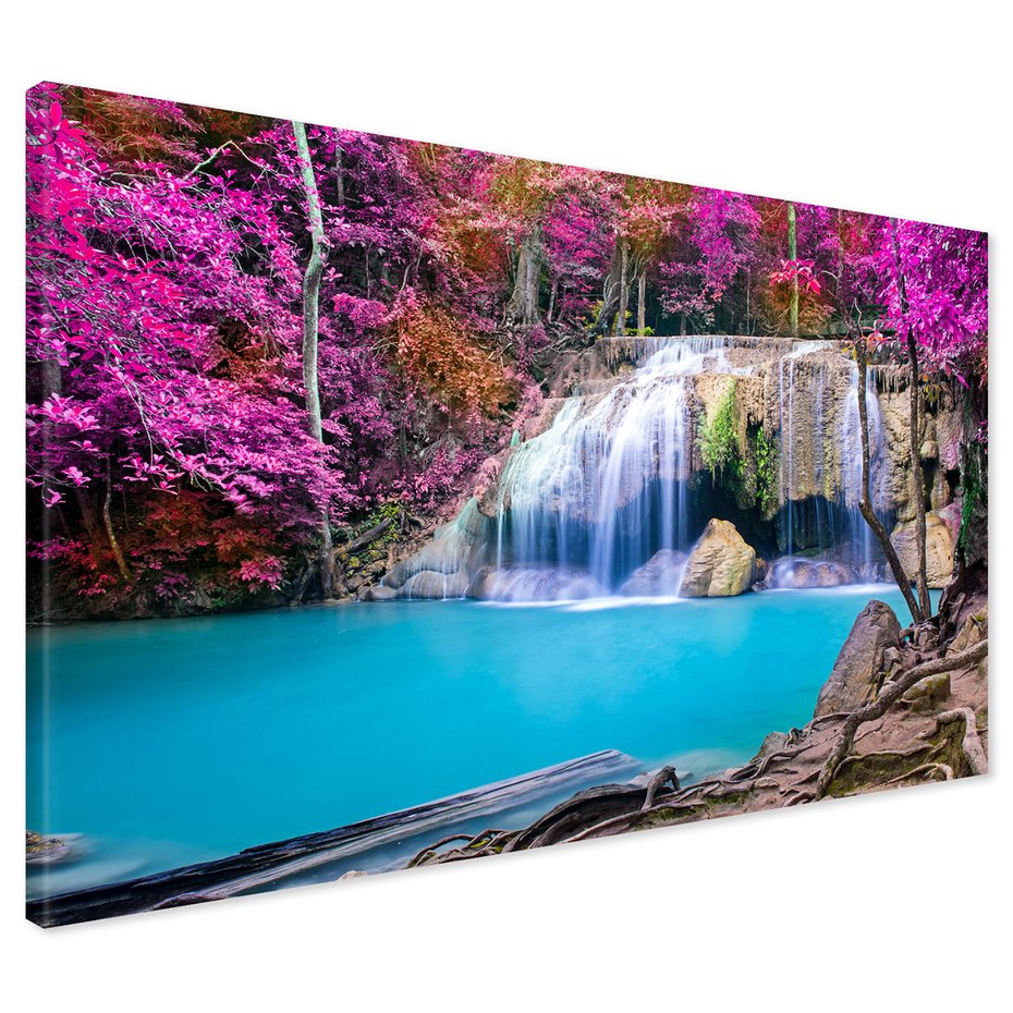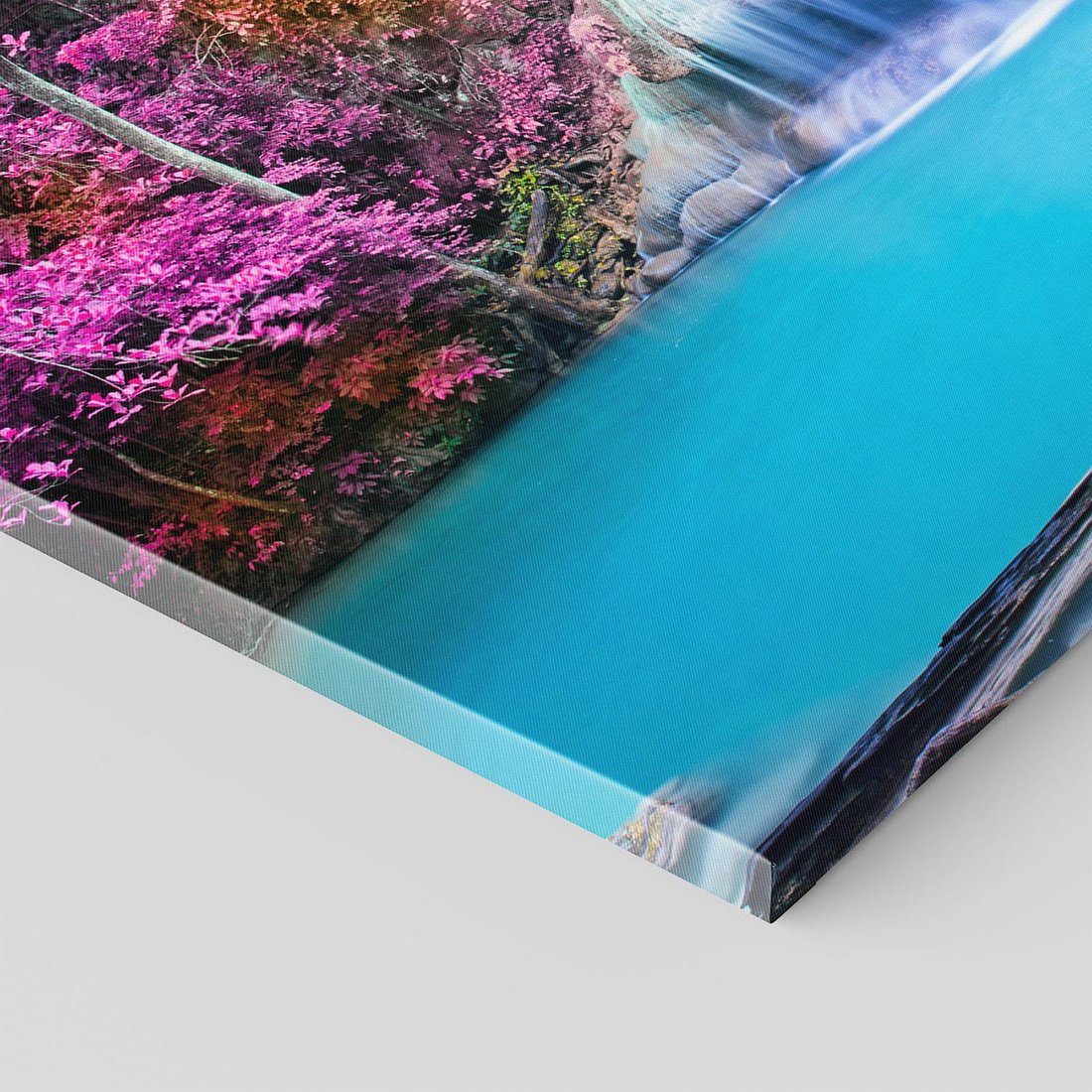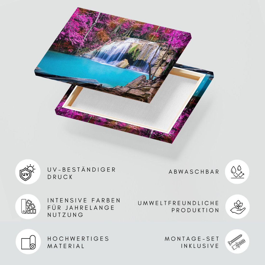 Obraz na płótnie z motywem wodospad, las, natura to kwintesencja estetyki i trwałości. Dzięki łatwemu montażowi i uniwersalnemu wzornictwu, czyni go idealnym wyborem zarówno do codziennego użytku, jak i na wyrafinowany prezent.