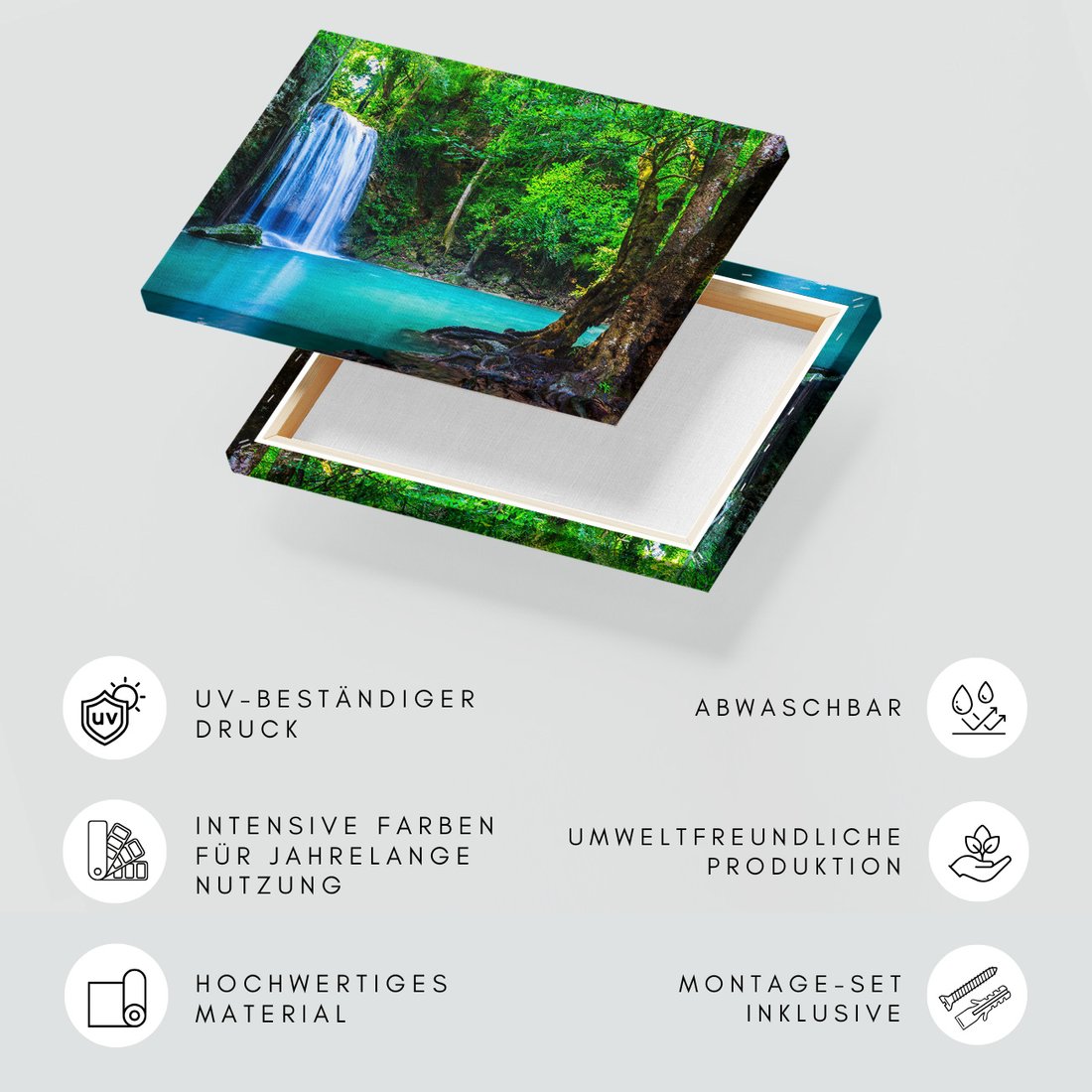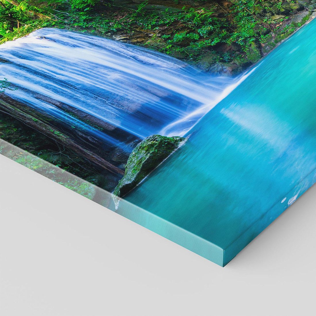 Obraz na płótnie z motywem wodospad, las, woda to kwintesencja estetyki i trwałości. Dzięki łatwemu montażowi i uniwersalnemu wzornictwu, czyni go idealnym wyborem zarówno do codziennego użytku, jak i na wyrafinowany prezent.