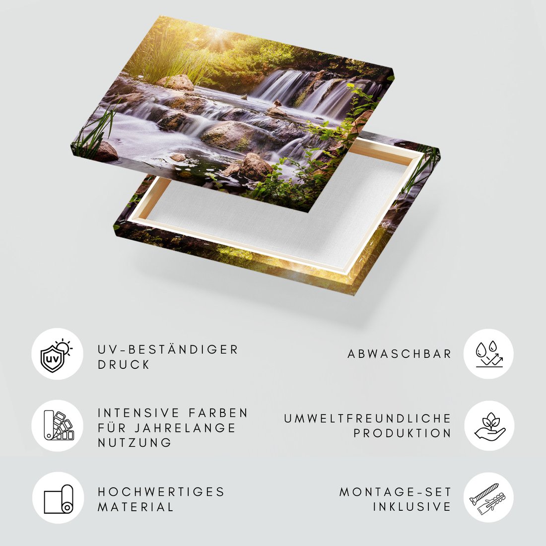 Obraz na płótnie z motywem wodospad, natura, woda to kwintesencja estetyki i trwałości. Dzięki łatwemu montażowi i uniwersalnemu wzornictwu, czyni go idealnym wyborem zarówno do codziennego użytku, jak i na wyrafinowany prezent.