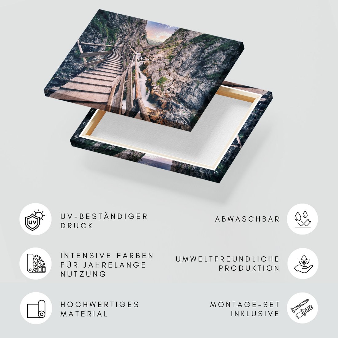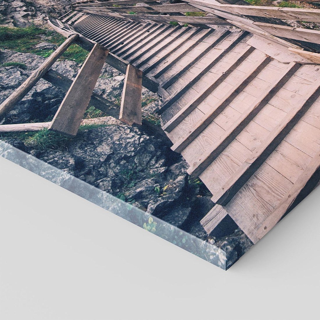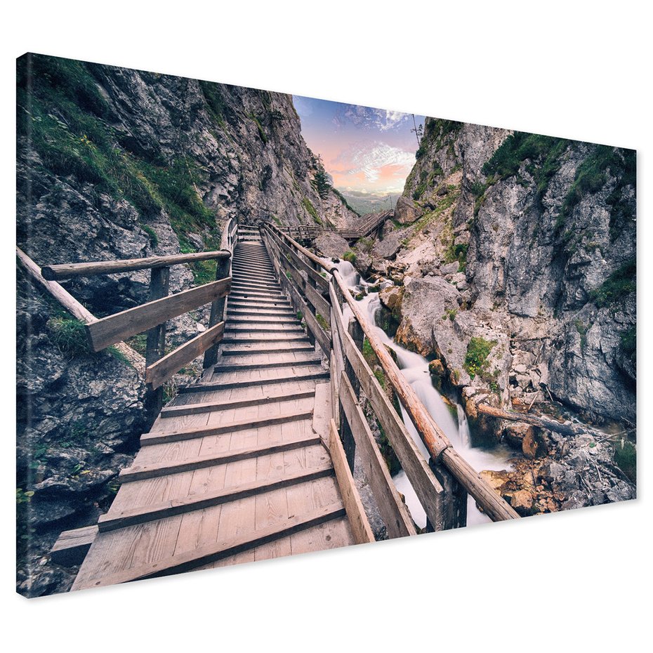 Obraz na płótnie z motywem wodospad, schody, góry to kwintesencja estetyki i trwałości. Dzięki łatwemu montażowi i uniwersalnemu wzornictwu, czyni go idealnym wyborem zarówno do codziennego użytku, jak i na wyrafinowany prezent.