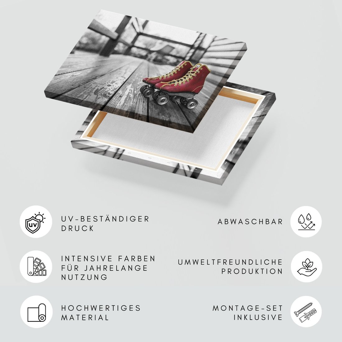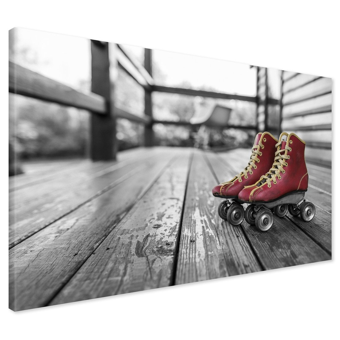 Obraz na płótnie z motywem wrotki, retro, czerwone to kwintesencja estetyki i trwałości. Dzięki łatwemu montażowi i uniwersalnemu wzornictwu, czyni go idealnym wyborem zarówno do codziennego użytku, jak i na wyrafinowany prezent.