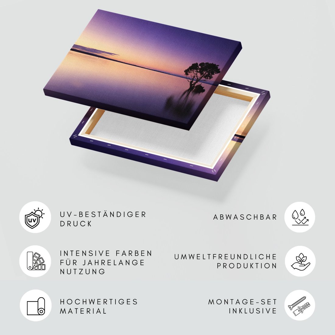 Obraz na płótnie z motywem zachód słońca, drzewo, woda to kwintesencja estetyki i trwałości. Dzięki łatwemu montażowi i uniwersalnemu wzornictwu, czyni go idealnym wyborem zarówno do codziennego użytku, jak i na wyrafinowany prezent.