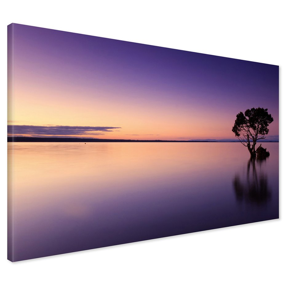 Obraz na płótnie - zachód słońca, drzewo, woda
