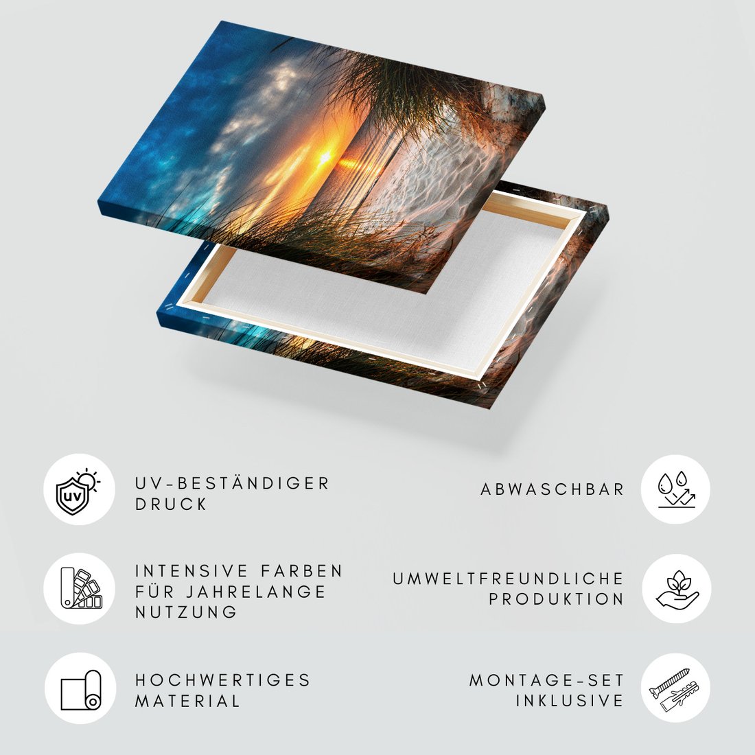 Obraz na płótnie z motywem zachód słońca, plaża, morze to kwintesencja estetyki i trwałości. Dzięki łatwemu montażowi i uniwersalnemu wzornictwu, czyni go idealnym wyborem zarówno do codziennego użytku, jak i na wyrafinowany prezent.