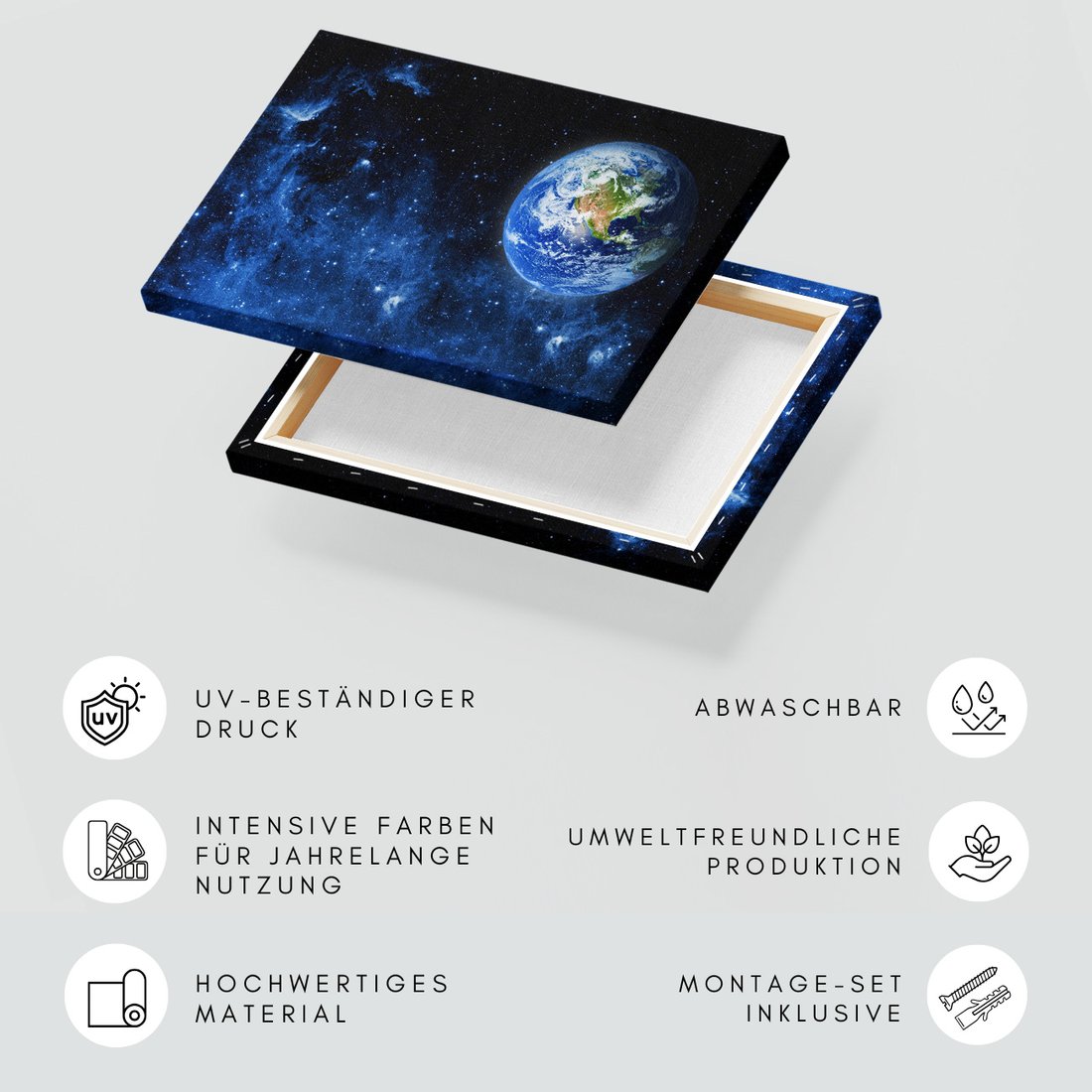 Obraz na płótnie z motywem ziemia, kosmos, gwiazdy to kwintesencja estetyki i trwałości. Dzięki łatwemu montażowi i uniwersalnemu wzornictwu, czyni go idealnym wyborem zarówno do codziennego użytku, jak i na wyrafinowany prezent.