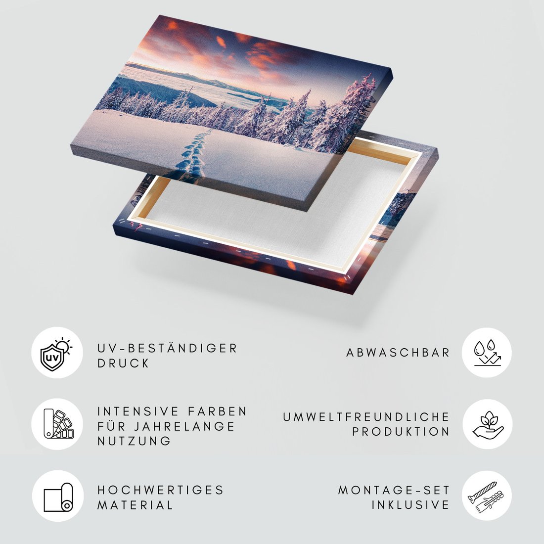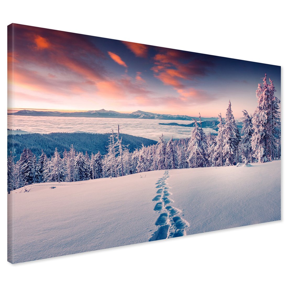 Obraz na płótnie z motywem zima, śnieg, krajobraz to kwintesencja estetyki i trwałości. Dzięki łatwemu montażowi i uniwersalnemu wzornictwu, czyni go idealnym wyborem zarówno do codziennego użytku, jak i na wyrafinowany prezent.