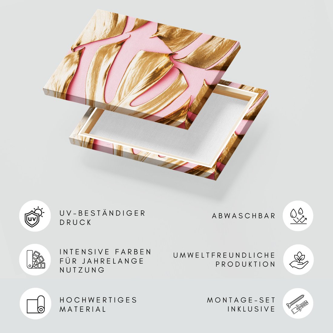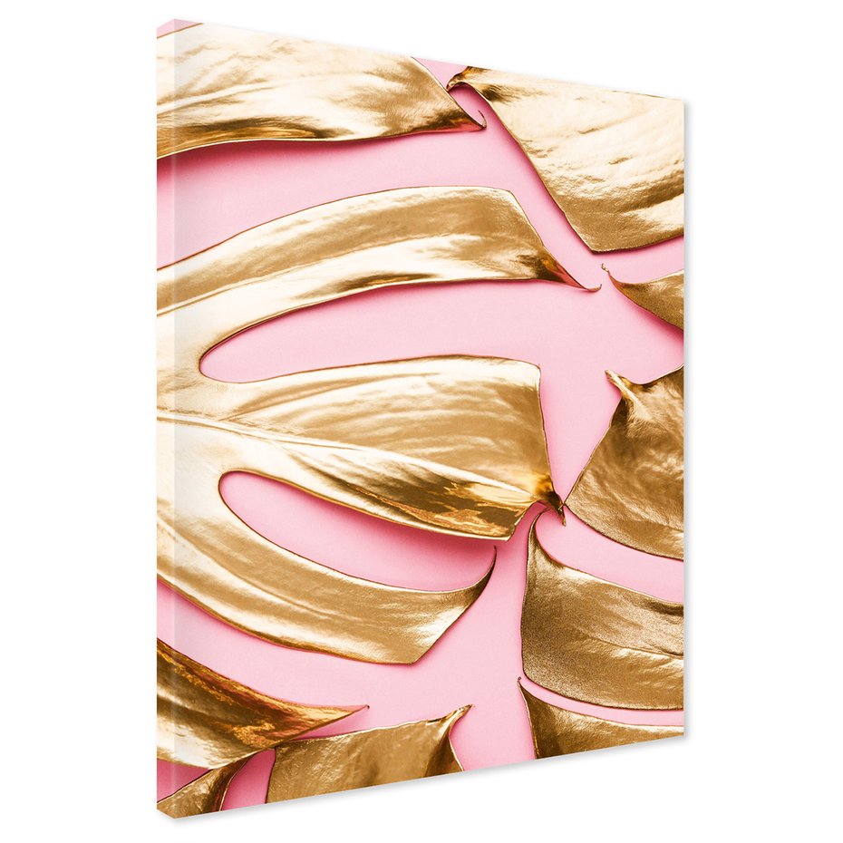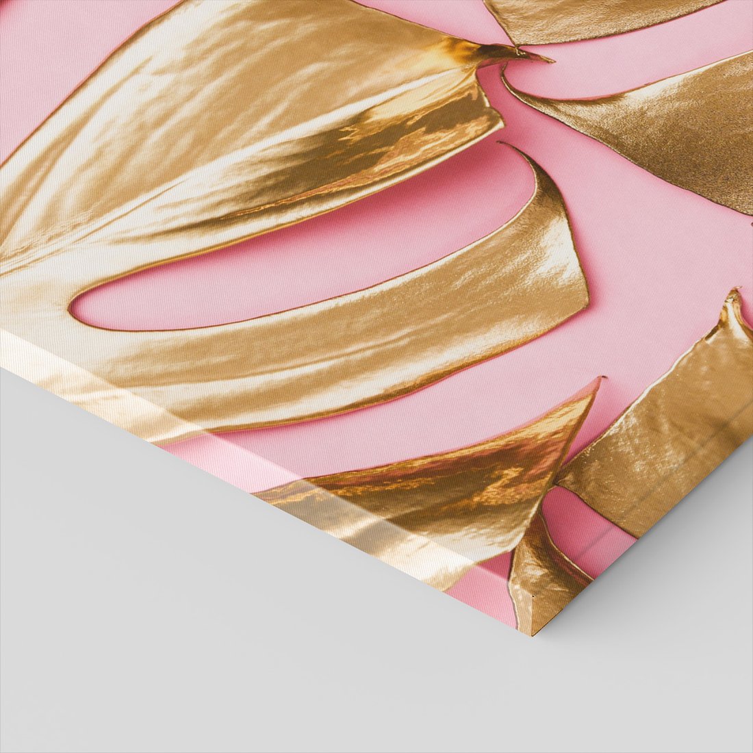 Obraz na płótnie z motywem złoty, liście, różowy to kwintesencja estetyki i trwałości. Dzięki łatwemu montażowi i uniwersalnemu wzornictwu, czyni go idealnym wyborem zarówno do codziennego użytku, jak i na wyrafinowany prezent.