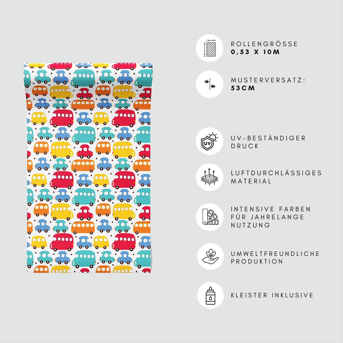 Odkryj piękno i funkcjonalność tapety z motywem dziecięca, autobus, samochód, kropki. To połączenie wyjątkowego wzornictwa z łatwością aplikacji, doskonałe do każdego pomieszczenia.