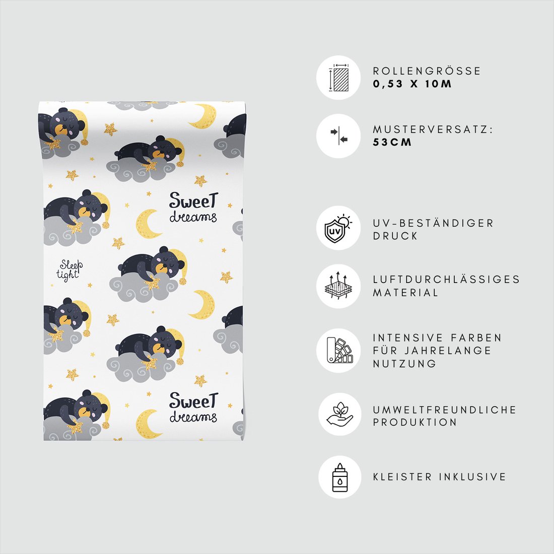 Odkryj piękno i funkcjonalność tapety z motywem dziecięca, chmura, niedźwiedź, sen. To połączenie wyjątkowego wzornictwa z łatwością aplikacji, doskonałe do każdego pomieszczenia.