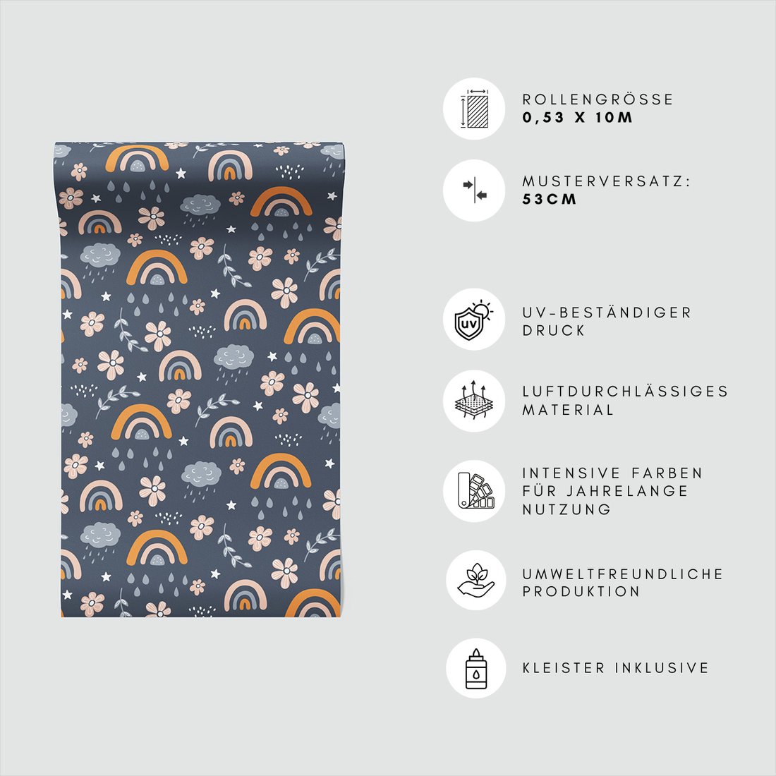 Odkryj piękno i funkcjonalność tapety z motywem dziecięca, chmura, tęcza, kwiaty. To połączenie wyjątkowego wzornictwa z łatwością aplikacji, doskonałe do każdego pomieszczenia.