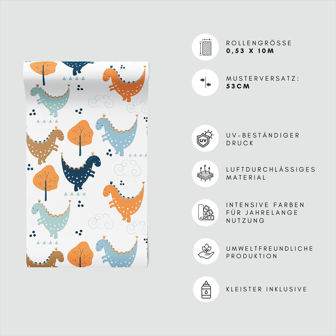 Odkryj piękno i funkcjonalność tapety z motywem dziecięca, dinozaury, drzewa, chmury. To połączenie wyjątkowego wzornictwa z łatwością aplikacji, doskonałe do każdego pomieszczenia.