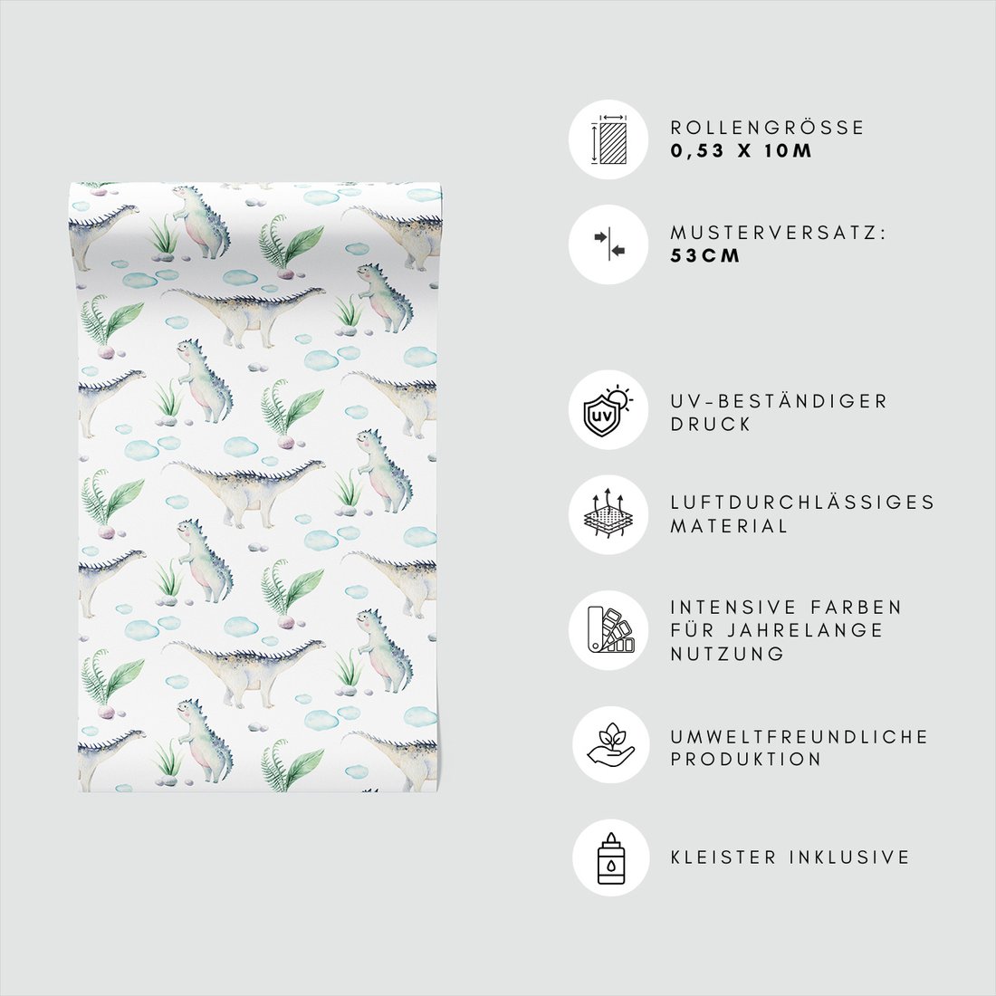 Odkryj piękno i funkcjonalność tapety z motywem dziecięca, dinozaury, liście, chmury. To połączenie wyjątkowego wzornictwa z łatwością aplikacji, doskonałe do każdego pomieszczenia.