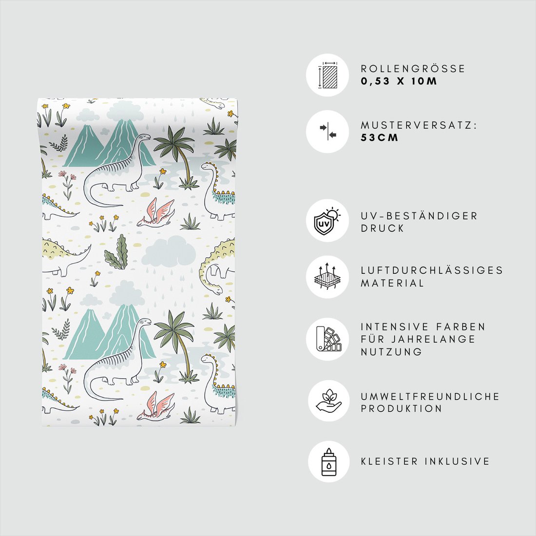 Odkryj piękno i funkcjonalność tapety z motywem dziecięca, dinozaury, palmy, góry. To połączenie wyjątkowego wzornictwa z łatwością aplikacji, doskonałe do każdego pomieszczenia.