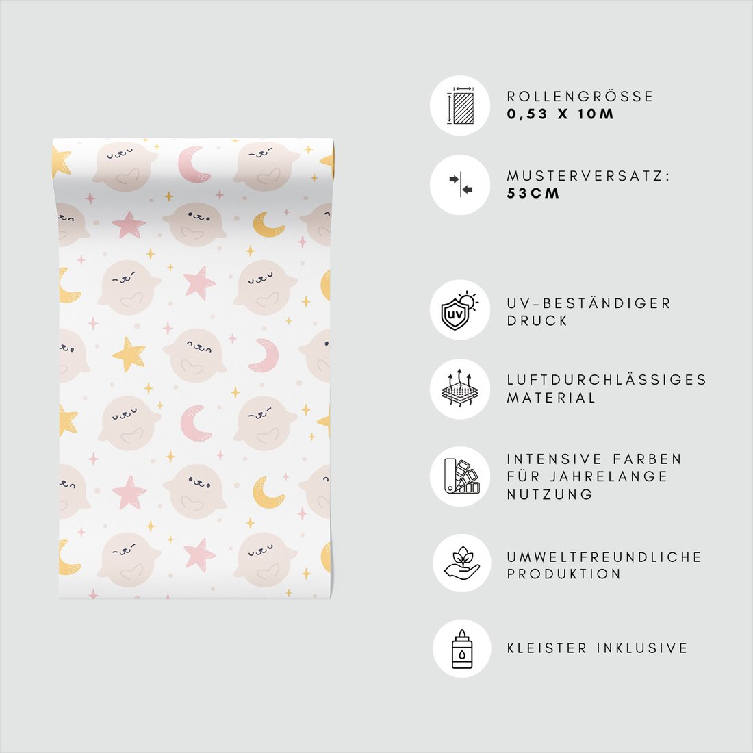 Odkryj piękno i funkcjonalność tapety z motywem dziecięca, duch, gwiazda, księżyc. To połączenie wyjątkowego wzornictwa z łatwością aplikacji, doskonałe do każdego pomieszczenia.