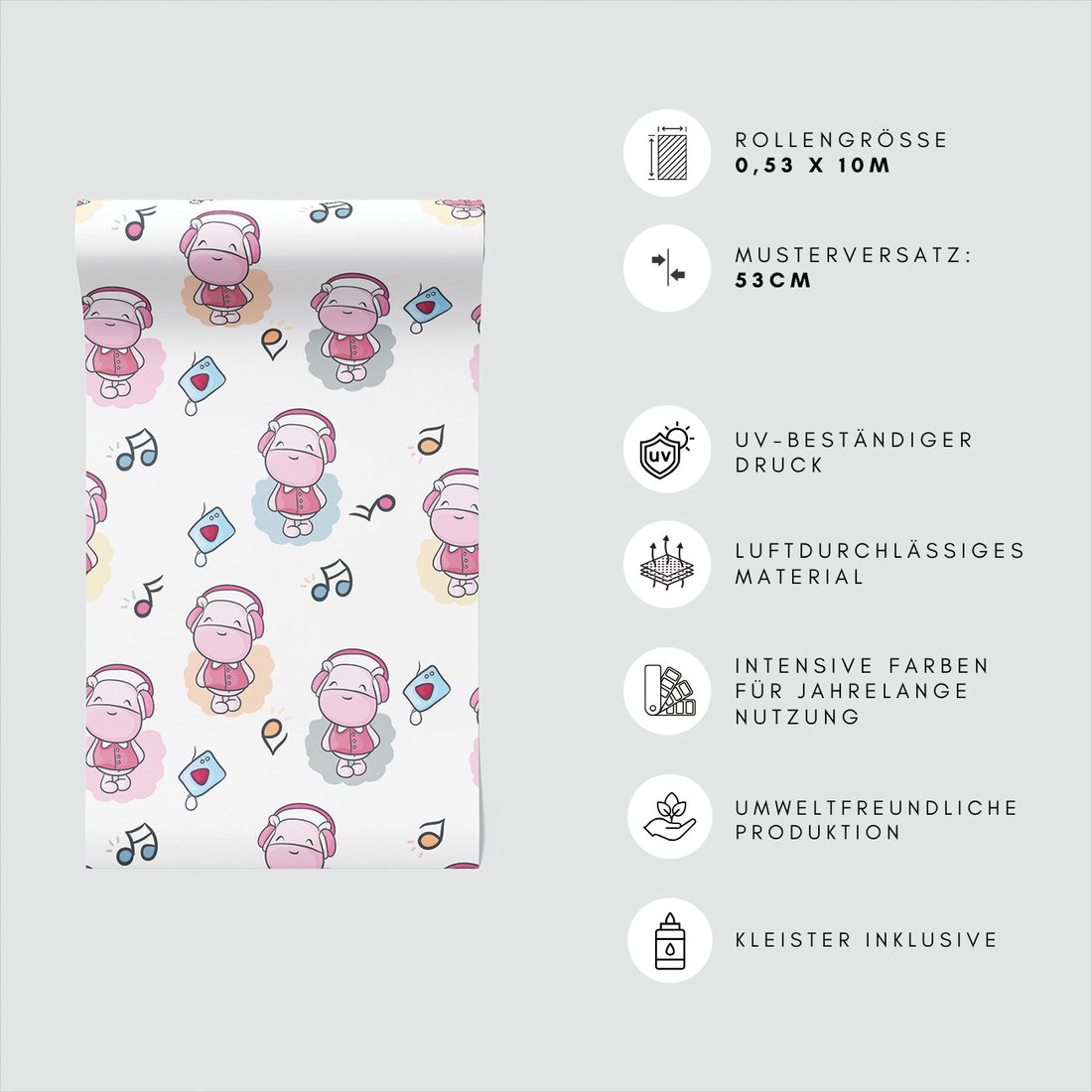 Odkryj piękno i funkcjonalność tapety z motywem dziecięca, hipopotam, słuchawki, muzyka. To połączenie wyjątkowego wzornictwa z łatwością aplikacji, doskonałe do każdego pomieszczenia.