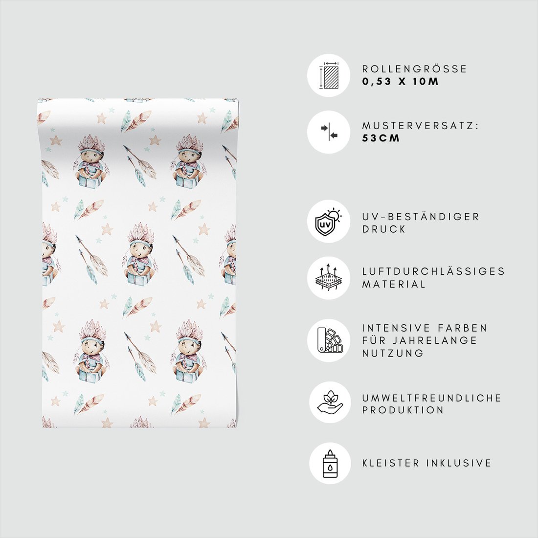 Odkryj piękno i funkcjonalność tapety z motywem dziecięca, indianin, pióra, gwiazdy. To połączenie wyjątkowego wzornictwa z łatwością aplikacji, doskonałe do każdego pomieszczenia.