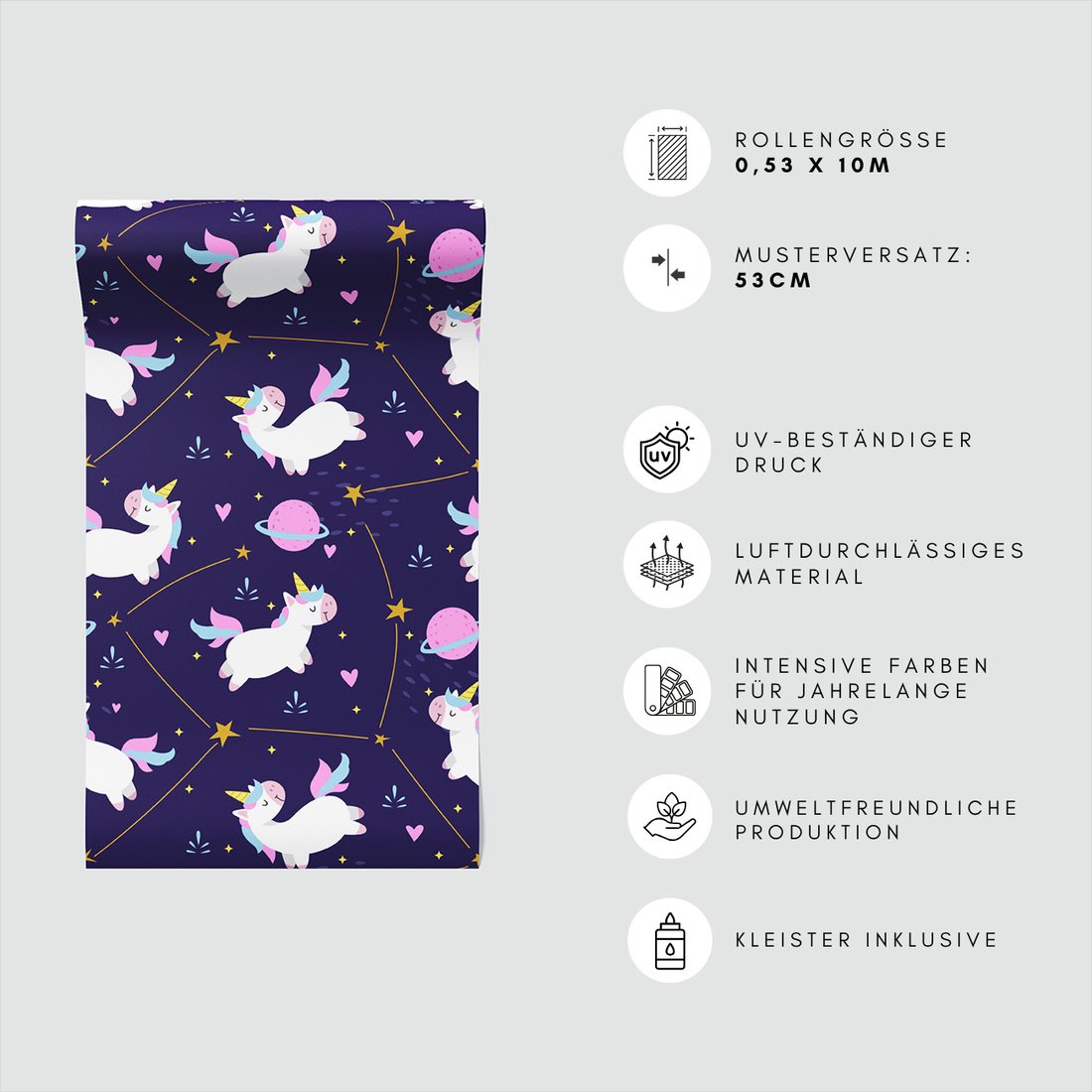 Odkryj piękno i funkcjonalność tapety z motywem dziecięca, jednorożce, gwiazdy, planety. To połączenie wyjątkowego wzornictwa z łatwością aplikacji, doskonałe do każdego pomieszczenia.
