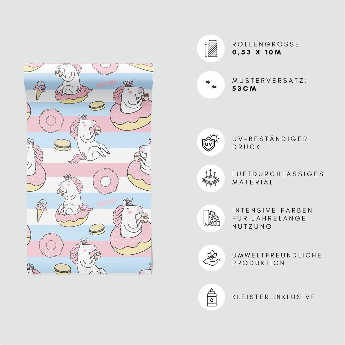 Odkryj piękno i funkcjonalność tapety z motywem dziecięca, jednorożce, pączki, lody. To połączenie wyjątkowego wzornictwa z łatwością aplikacji, doskonałe do każdego pomieszczenia.
