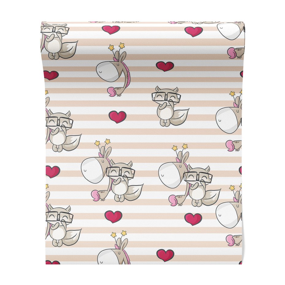 - Tapeta - dziecięca, jednorożce, serca, paski
