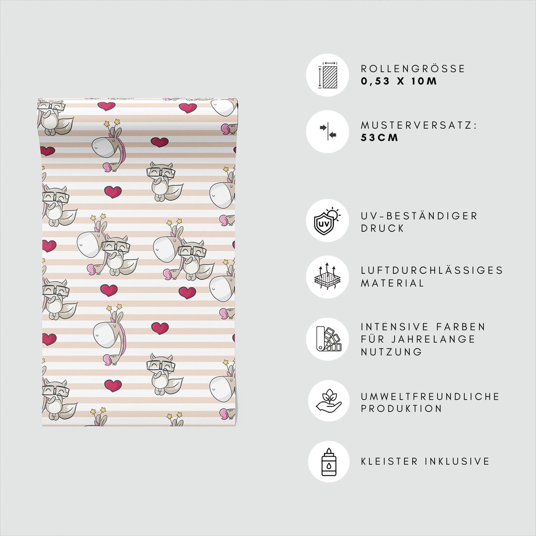 Odkryj piękno i funkcjonalność tapety z motywem dziecięca, jednorożce, serca, paski. To połączenie wyjątkowego wzornictwa z łatwością aplikacji, doskonałe do każdego pomieszczenia.