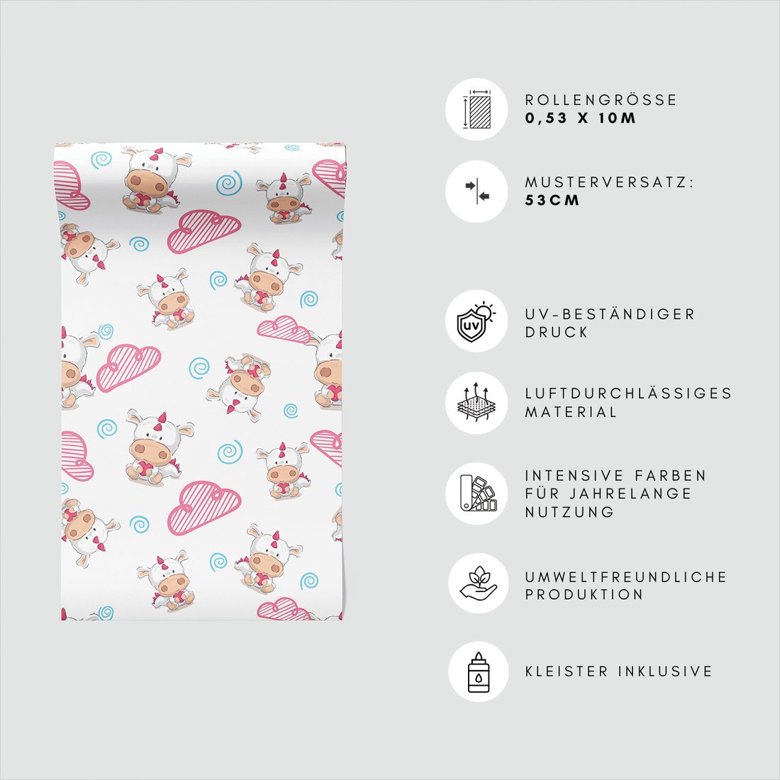 Odkryj piękno i funkcjonalność tapety z motywem dziecięca, jednorożec, chmura, serce. To połączenie wyjątkowego wzornictwa z łatwością aplikacji, doskonałe do każdego pomieszczenia.