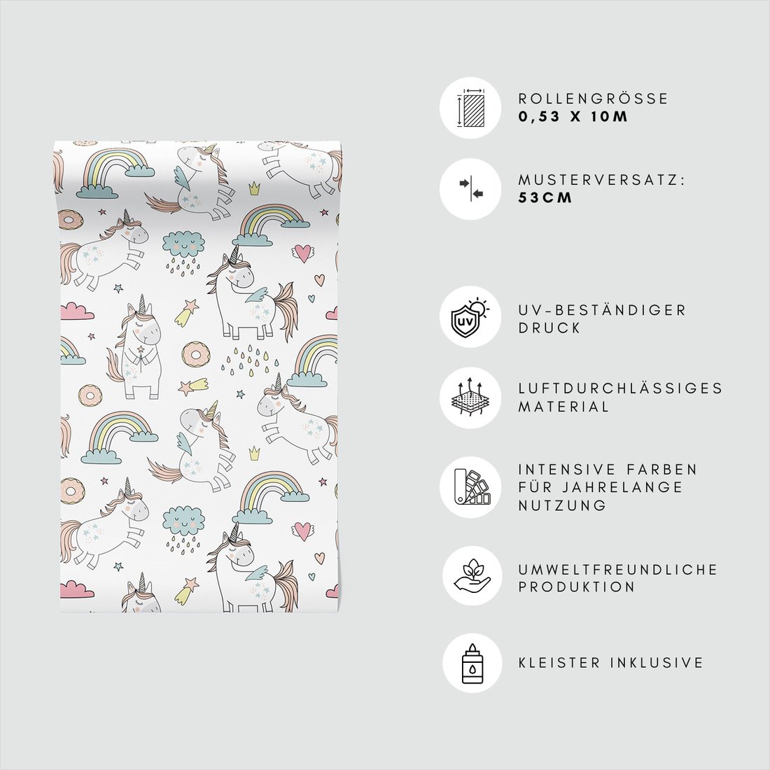 Odkryj piękno i funkcjonalność tapety z motywem dziecięca, jednorożec, tęcza, chmura. To połączenie wyjątkowego wzornictwa z łatwością aplikacji, doskonałe do każdego pomieszczenia.