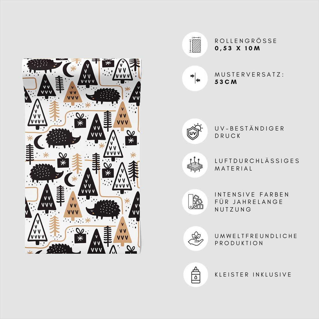 Odkryj piękno i funkcjonalność tapety z motywem dziecięca, jeże, prezenty, drzewa. To połączenie wyjątkowego wzornictwa z łatwością aplikacji, doskonałe do każdego pomieszczenia.
