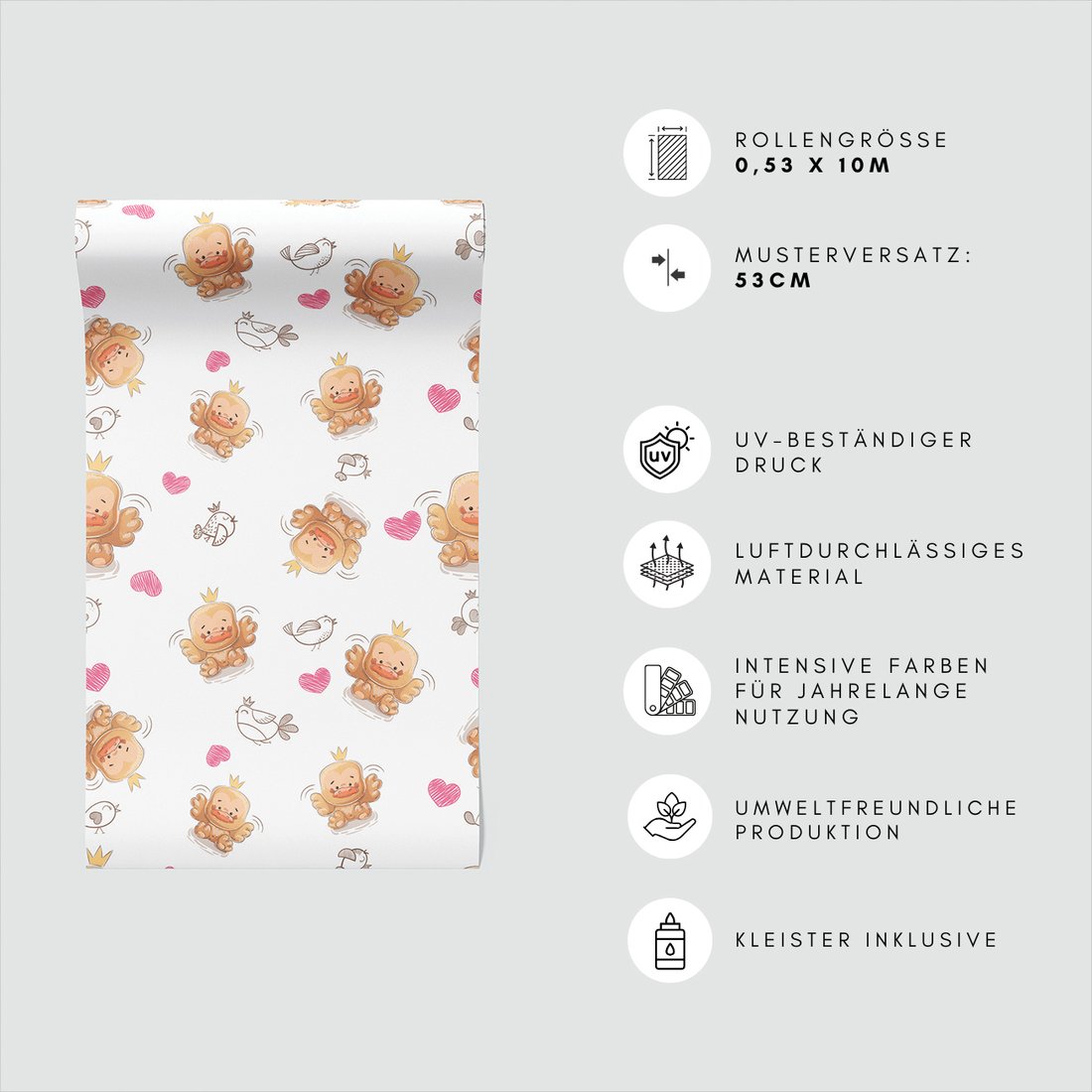 Odkryj piękno i funkcjonalność tapety z motywem dziecięca, kaczka, ptaki, serca. To połączenie wyjątkowego wzornictwa z łatwością aplikacji, doskonałe do każdego pomieszczenia.
