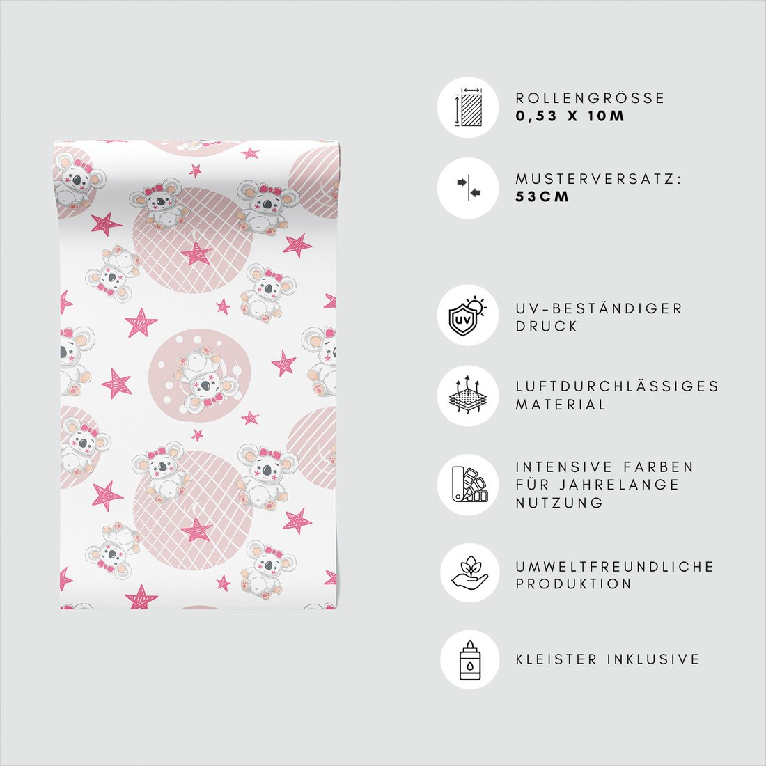 Odkryj piękno i funkcjonalność tapety z motywem dziecięca, koala, gwiazdy, tło. To połączenie wyjątkowego wzornictwa z łatwością aplikacji, doskonałe do każdego pomieszczenia.