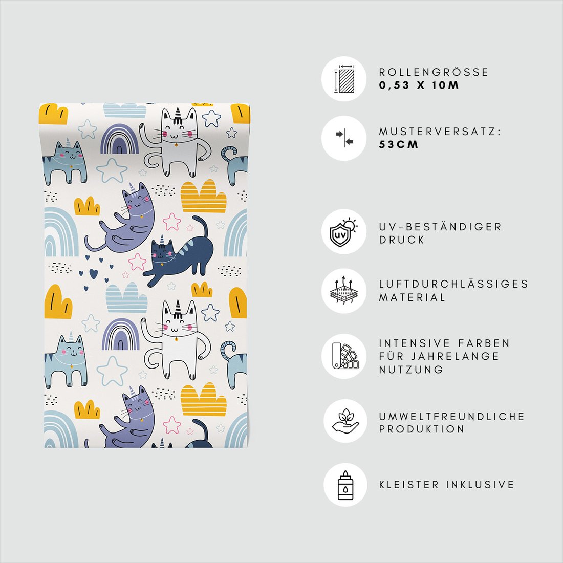 Odkryj piękno i funkcjonalność tapety z motywem dziecięca, koty, jednorożce, gwiazdy. To połączenie wyjątkowego wzornictwa z łatwością aplikacji, doskonałe do każdego pomieszczenia.