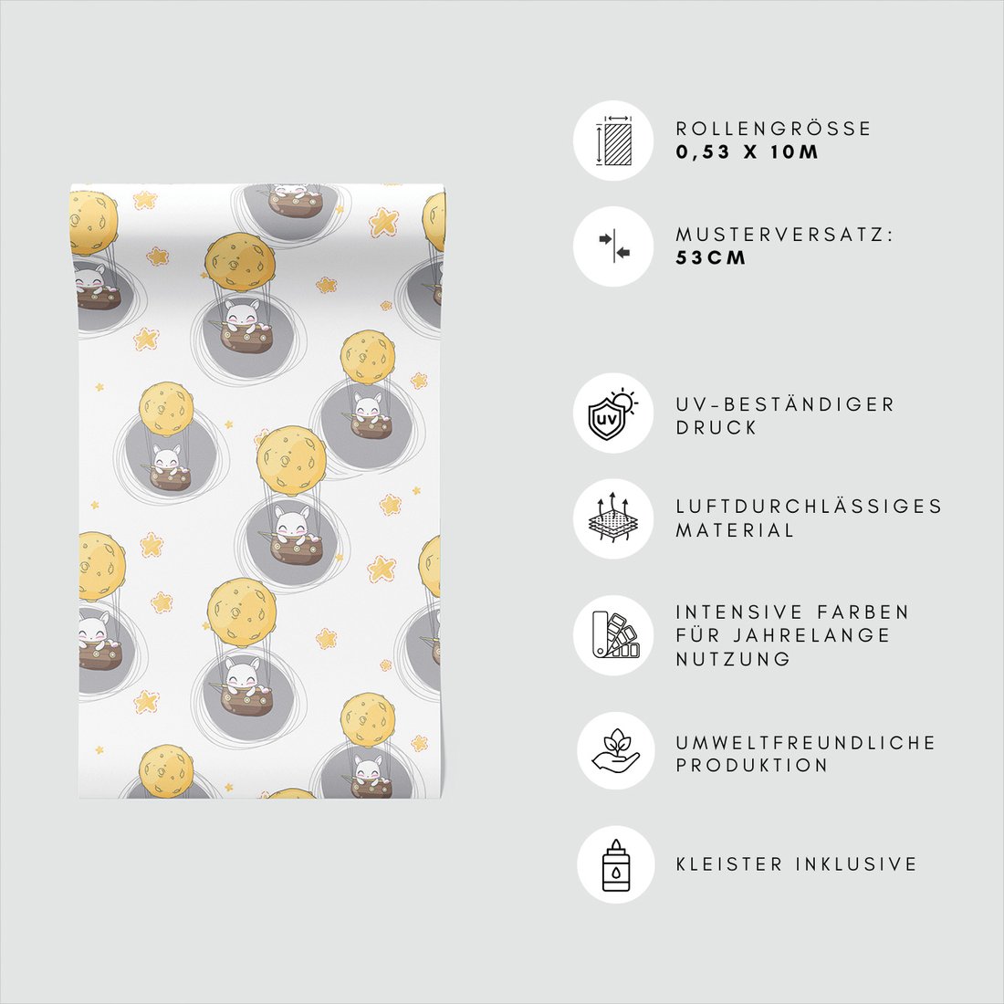 Odkryj piękno i funkcjonalność tapety z motywem dziecięca, królik, księżyc, gwiazdy. To połączenie wyjątkowego wzornictwa z łatwością aplikacji, doskonałe do każdego pomieszczenia.