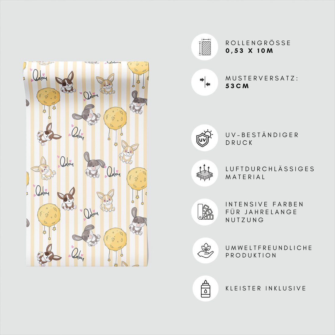 Odkryj piękno i funkcjonalność tapety z motywem dziecięca, królik, księżyc, serce. To połączenie wyjątkowego wzornictwa z łatwością aplikacji, doskonałe do każdego pomieszczenia.