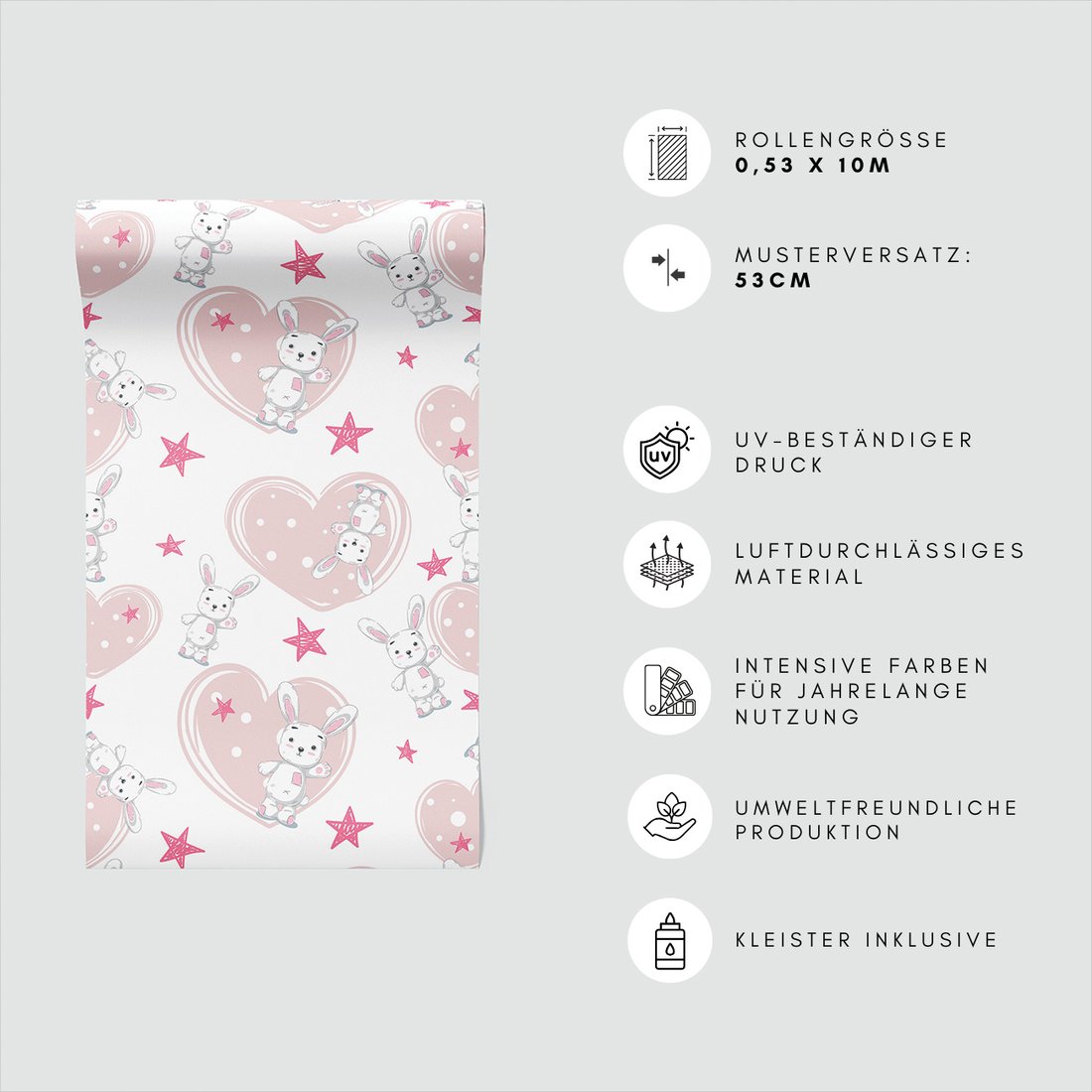 Odkryj piękno i funkcjonalność tapety z motywem dziecięca, królik, serce, gwiazda. To połączenie wyjątkowego wzornictwa z łatwością aplikacji, doskonałe do każdego pomieszczenia.