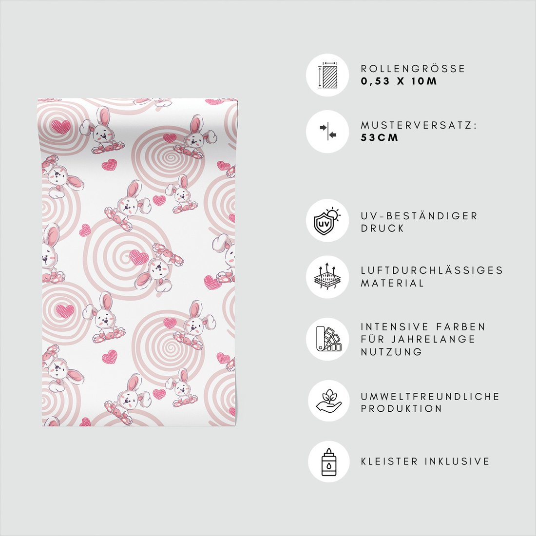 Odkryj piękno i funkcjonalność tapety z motywem dziecięca, królik, serce, koło. To połączenie wyjątkowego wzornictwa z łatwością aplikacji, doskonałe do każdego pomieszczenia.