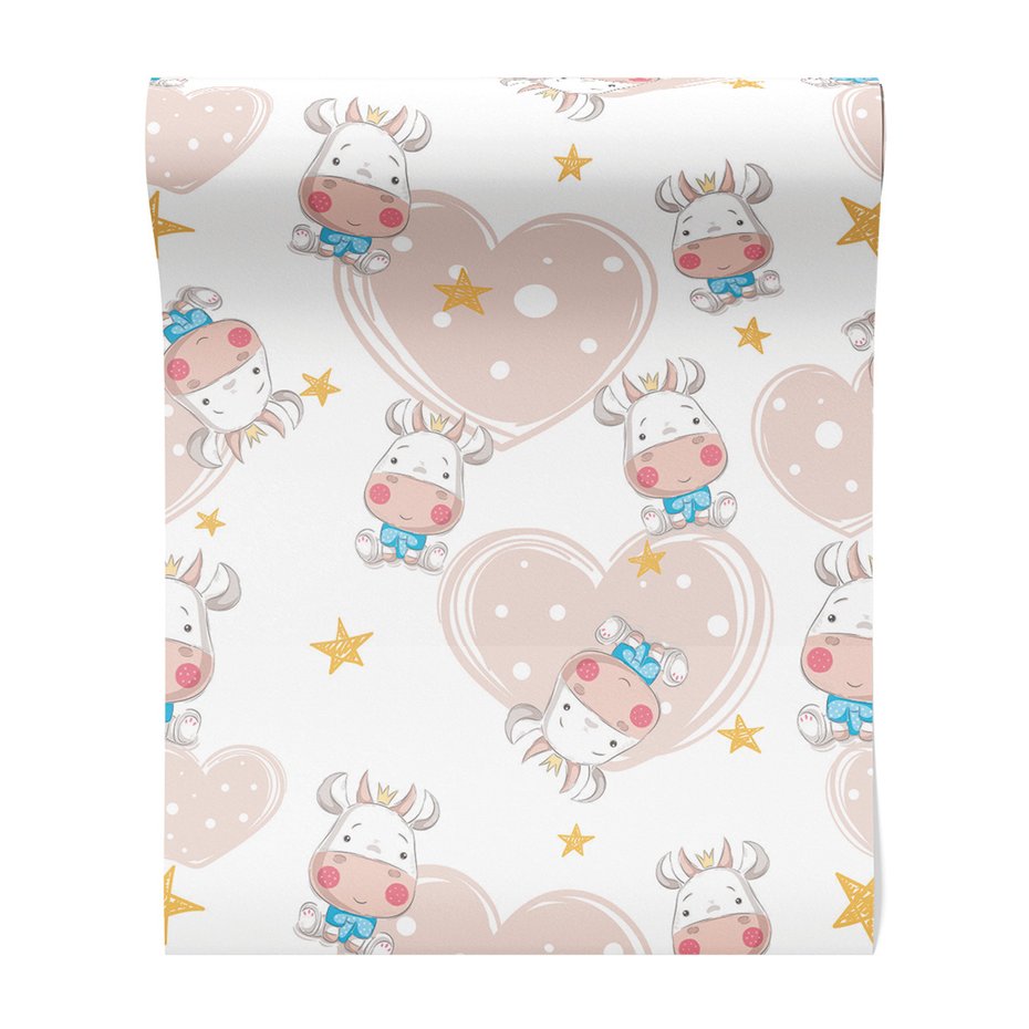 Tapeta - dziecięca, krowa, serce, gwiazda
