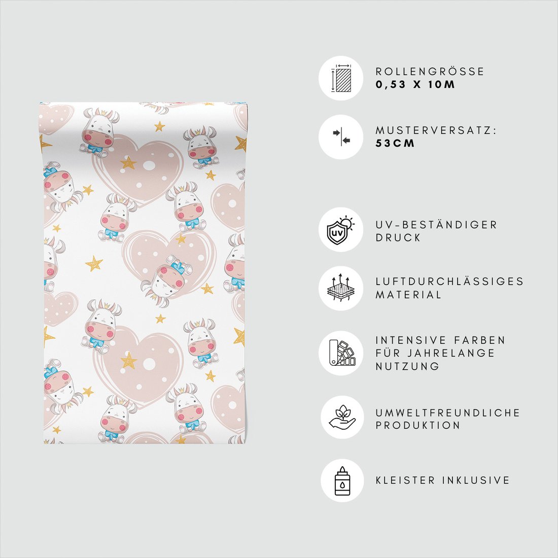 Odkryj piękno i funkcjonalność tapety z motywem dziecięca, krowa, serce, gwiazda. To połączenie wyjątkowego wzornictwa z łatwością aplikacji, doskonałe do każdego pomieszczenia.